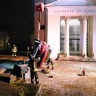 Auto sbanda e finisce rovesciata nella piazzetta davanti al sacrario: soccorsi quattro passeggeri
