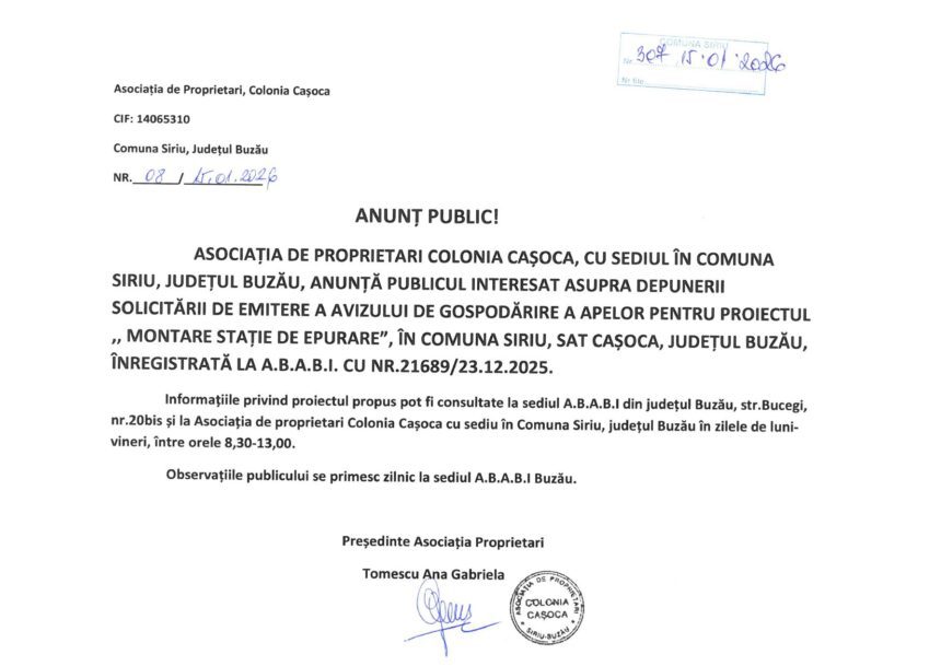 Source URL: https://buzaumedia.ro/stiri-buzau/asociatia-de-proprietari-colonia-casoca-anunt-public-2/