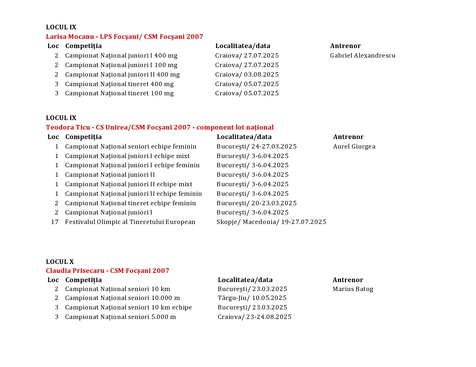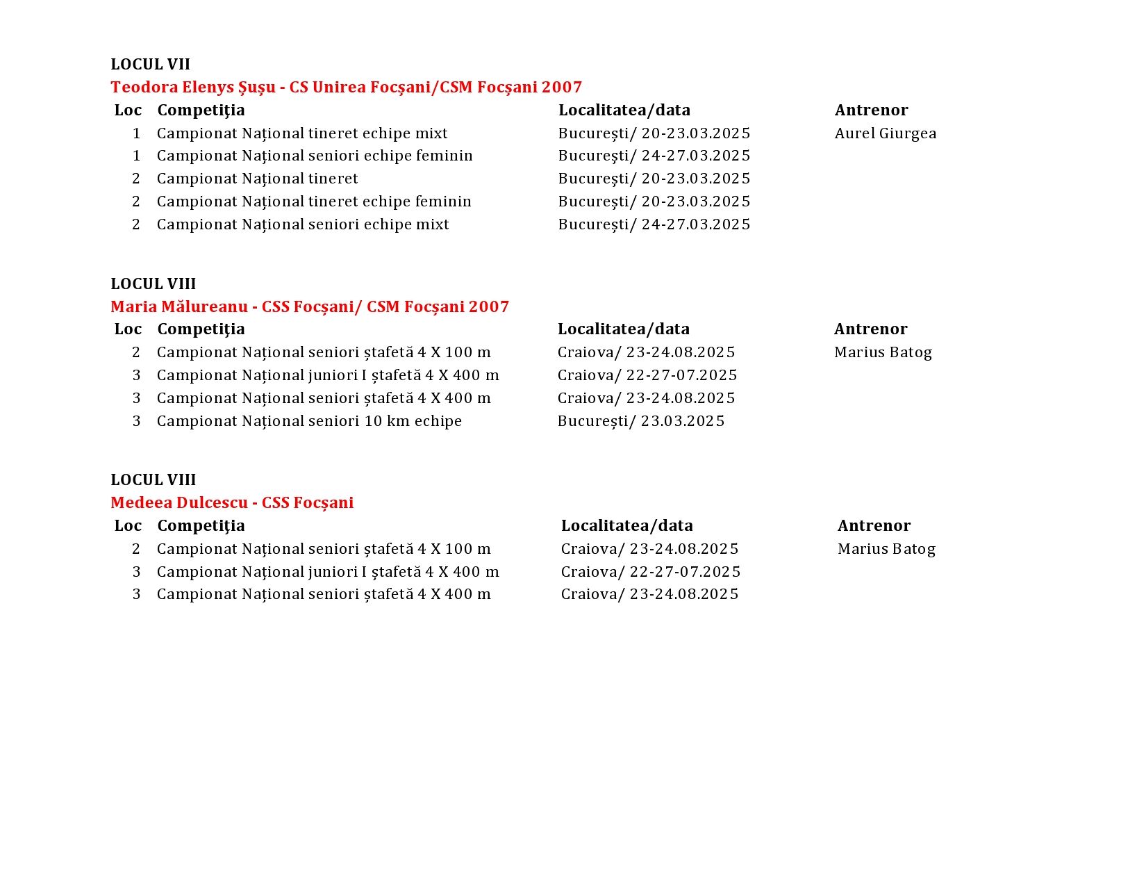 În Top 10 sportivi olimpici ai Vrancei – 2025 se regăsesc și: