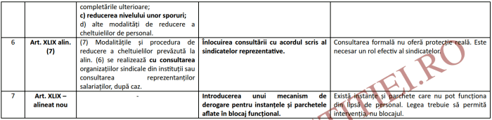 Redăm tabelul cu amendementele propuse de sindicat: