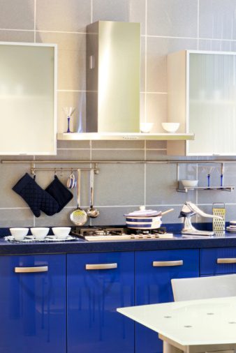 O alta culoare care te va face sa te indragostesti imediat de bucataria ta este albastrul stralucitor, o nuanta foarte puternica, care determina fericirea si arata prospetimea. Daca aceasta este mult prea racoroasa pentru tine, o poti combina cu alb sau un albastru mai deschis.