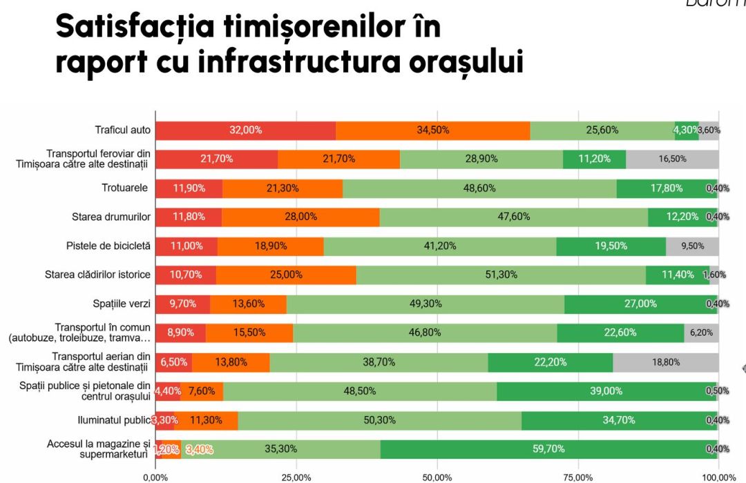 50% dintre timișorenii chestionați se arată nemulțumiți de locurile de parcare din cartierele în care locuiesc, iar peste 30% de evenimentele culturale care se organizează pe plan local.