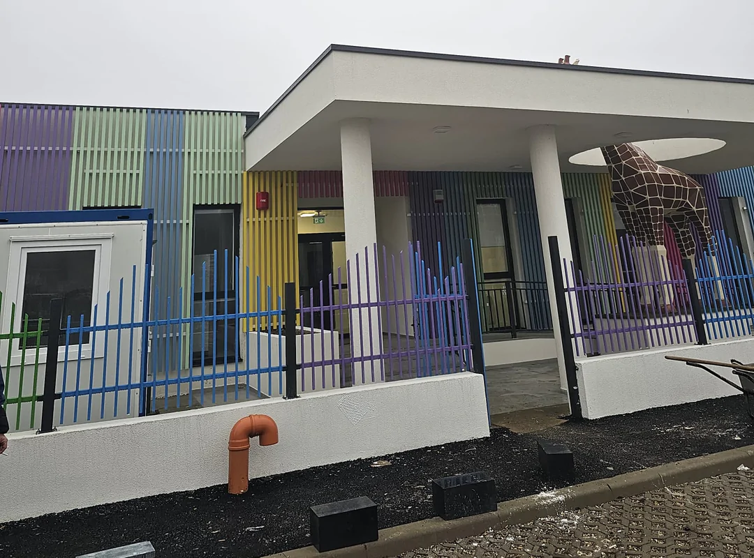 Pe modelul implementat la nivel de țară în mai multe localități, între care și Timișoara, cei mici vor fiîntâmpinați la intrare de o girafă uriașășiprietenoasă.