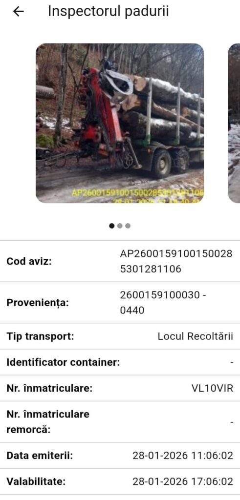 Miercuri, 28 ianuarie 2026, s-a întâmplat un lucru cel puțin ciudat la Poliția Brezoi. În jurul prânzului, dintr-un camion au fost descărcați circa 15 metri cubi de bușteni. Cel mai probabil, pentru uzul sediului poliției orășenești. Imediat după descărcare, buștenii au fost rapid încărcați în camionul care a plecat spre o destinație necunoscută. Conform site-ului inspectorulpadurii.ro, din care publicăm două capturi (VEZI FOTO JOS), rezultă că societatea care a făcut tăierea și transportul masei lemnoase este SC Viaduct SRL. Datele de pe site confirmă că transportul a ajuns inițial în curtea Poliției Brezoi, întrucât se potrivește ora emiterii avizului, care a fost emis de Ocolul Silvic Clăbucet. Cel mai probabil, în timp ce se descărcau lemnele, ori imediat după, cineva mai mintos s-a sesizat, și-a dat seama de situația în care se pune secția de Poliție și a dat la loc comanda. Sau, apropo de comandă, șeful Poliției Brezoi, comisarul șef Alin Guța, a conștientizat că informațiile „au transpirat” și în alte părți și n-a mai dus achiziția la bun sfârșit. Dar oare era prima de acest fel?