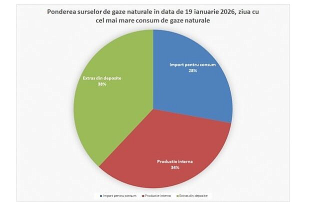 Gazele din depozitele de gaze au fost principala ”sursă” care a acoperit consumul în ziua cu cel mai mare consum de gaze din anul 2026, dar în fapt situația din România a fost salvată de gazele din import, care au avut cea mai mare flexibilitatea, având o creștere de aproape 500 % față de media lunii (față de 14% flexibilitatea gazelor din înmagazinare și 0,1% a gazelor din producția internă).