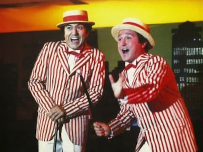 Efectivamente, el cómico nació en Zaragoza en 1945 y comenzó su trayectoria en el circo y el teatro con su padre. En 1964 se mudó a Madrid, se centró en el teatro, y ya logró cierto renombre cómico en apariciones en televisión hacia 1972, antes de saltar a la gran pantalla junto a Andrés Pajares, su pareja artística en el cine posterior a la Transición. Juntos, dirigidos y guionizados por Mariano Ozores, reventaron la taquilla con nueve películas en cuatro años, de 1979 a 1983. “Aquellas películas eran un testimonio del momento”, explicó a ICON Fernando Esteso en una entrevista en 2018. “Teníamos cuatro semanas para rodar. Íbamos tan rápido que a veces movíamos la boca sin decir nada y luego ya meteríamos algún chiste en el estudio de doblaje. Ensayábamos primero para reírnos a gusto, porque los negativos costaban un dineral”, describió entonces.
