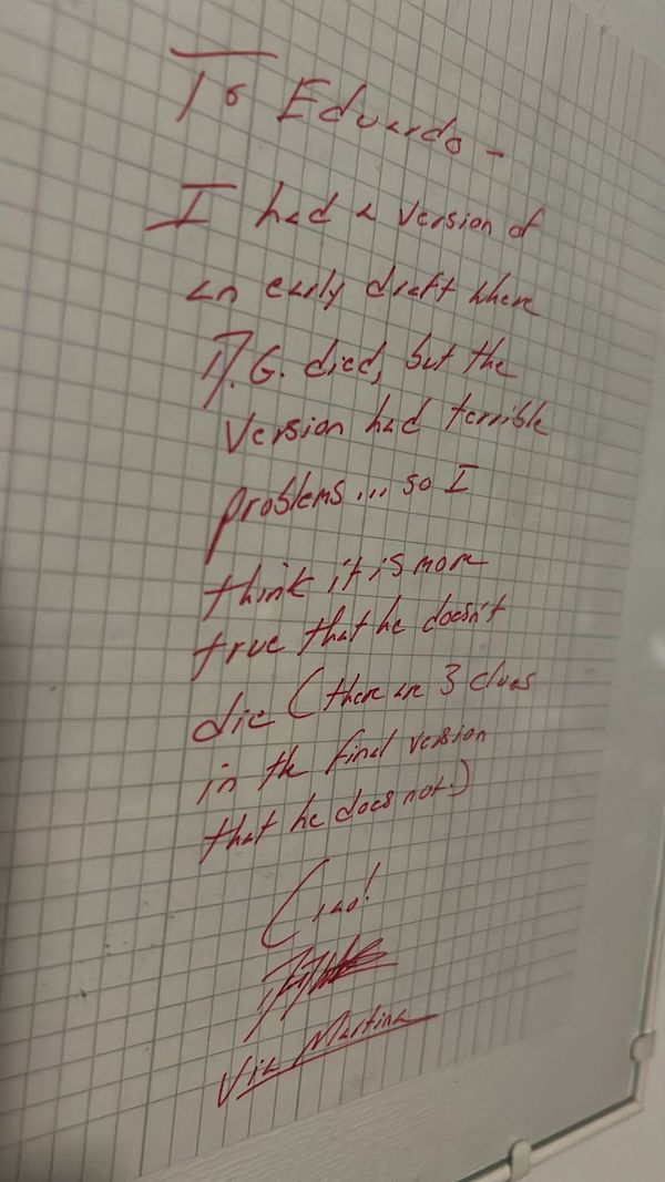 Un biglietto scritto da David Foster Wallace e inviato a Edoardo Nesi nel 2000