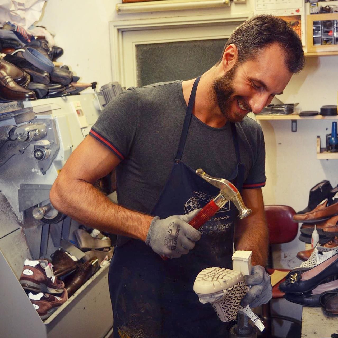 Intanto, sognando di fondare una “accademia per calzolai”, visto che il lavoro c’è ed è pure esorbitante, ha deciso di sposarsi e partire per il viaggio di nozze, comunicandolo a tutti, ma non su Facebook o Instagram. Direttamente sulla saracinesca. Forse per inseguire quel gusto un po’ così di riscoprire le cose di un tempo, sicuramente per rispettare i suoi tanti clienti analogici che, insospettabilmente, hanno fotografato l’annuncio per farlo vedere ai nipoti. Chi ha detto che la pubblicità non è l’anima del commercio?
