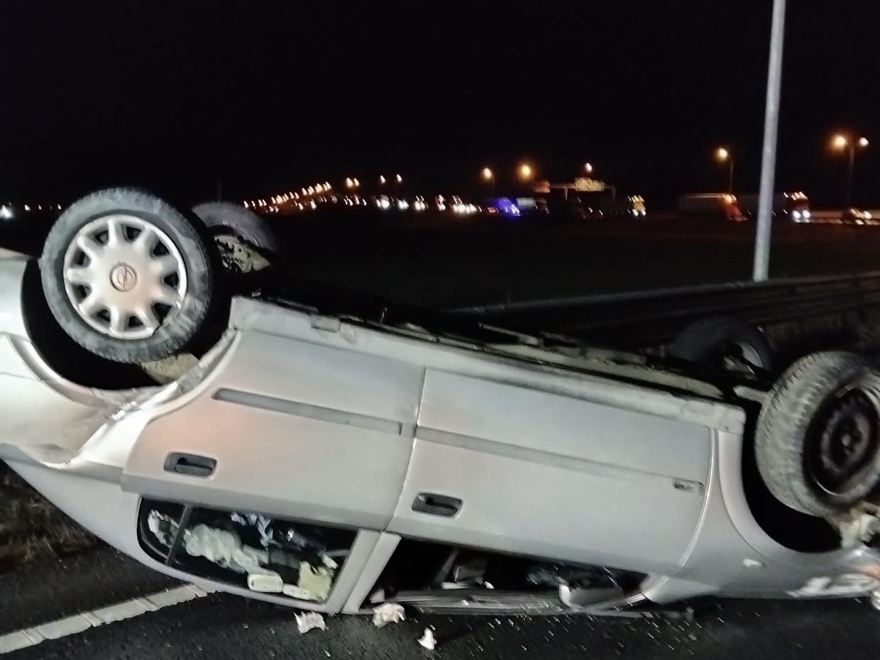 Mașină răsturnată în apropierea unui municipiu din vestul țării UPDATE Traficul a fost reluat
