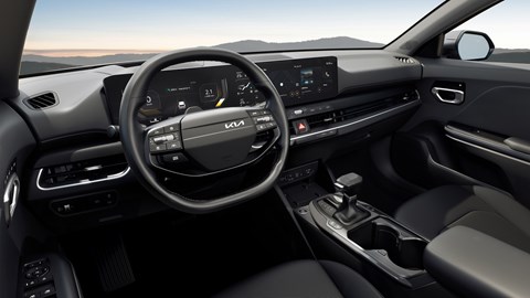 The interior mirrors the K4 hatch, with a 12.3-inch touchscreen and digital instrument cluster of the same size. Between them sits a small climate screen display, as seen on other Kia models, such as the EV3. There’s also a rather old-school chunky gear selector on versions fitted with an automatic gearbox.