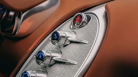 But the centrepiece of the FKP Hommage’s interior is the clock – a 43mm Audemars Piguet Royal Oak watch custom created for the car at the request of the owner. Bugatti wouldn’t tell us how much but a quick search shows it’s likely to be somewhere in the region of half a million pounds. Just for the clock…
