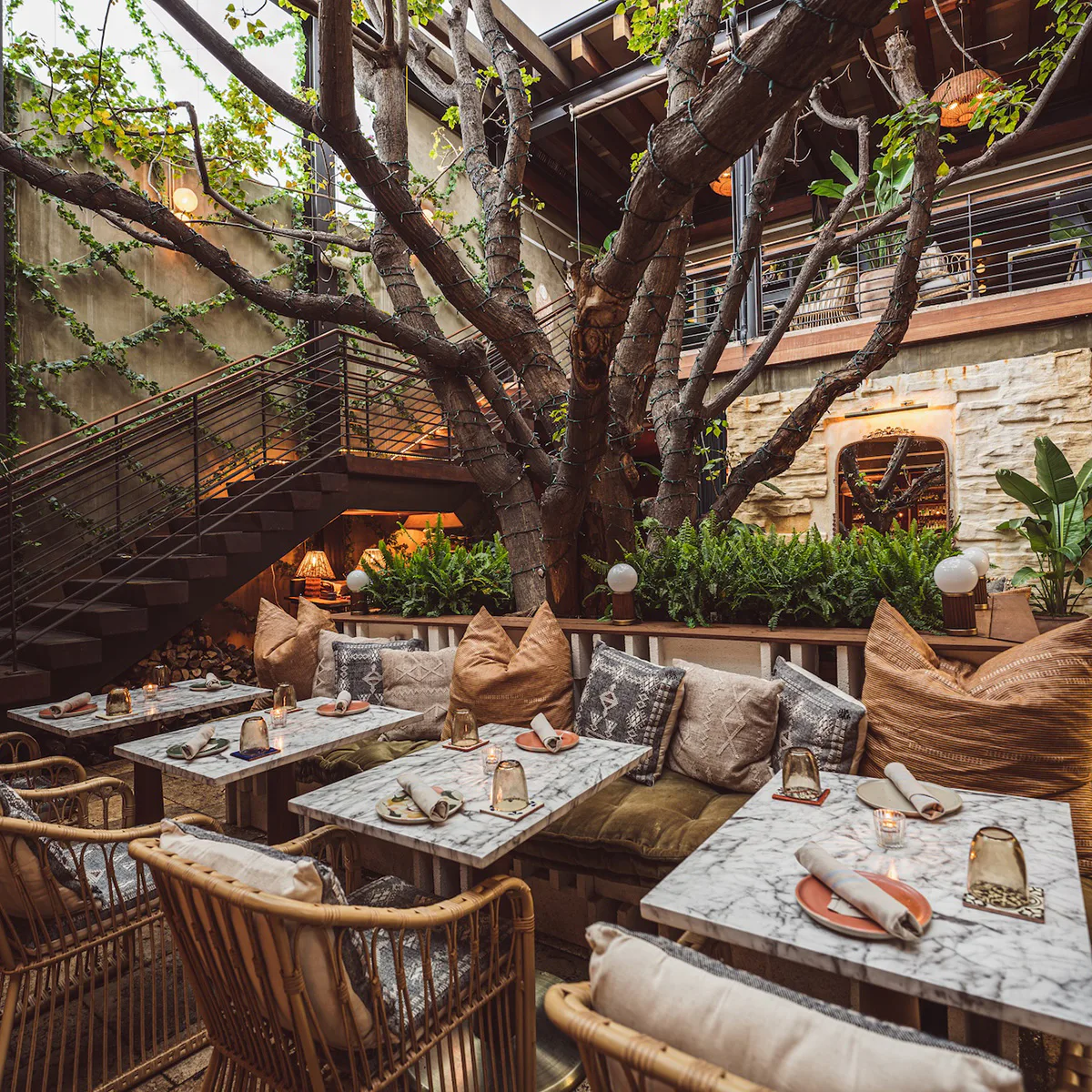 Photos courtesy of Clemente Bar/Emily Setelin, 1 Hotel Brooklyn Bridge, Kumiko/Alan Nguyen, Julia Momose, Mirate/Matt Egan, The Hope Farm, True Laurel/Aubrie Pick, The Lodge at Blue Sky/Auberge Collection
