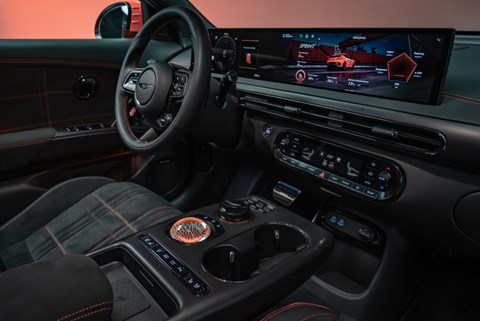 Inside we get a Magma specific UI, with a three-circle displaying key info like motor and battery temperatures, speed and of course G-forces… Like the high-end GV60s and the Kia EV6 and Hyundai Ioniq 5 N, you also get a virtual gear shift system for a more analogue driving experience.