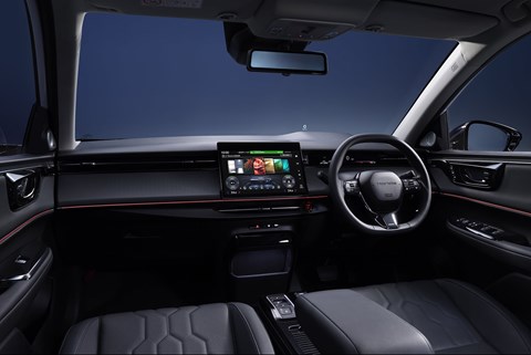 Beneath the angular looks and Polestar 2-like body shape is a hybrid powertrain. The Chinese market version uses a 201bhp electric motor on the front wheels with a 68.8kWh battery pack, with a CLTC-procedure claimed range of 339 miles. Honda’s Japanese website only claims one performance metric for that version: a 229lb ft torque figure.