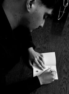Drumul catre scris a inceput intr-o perioada marcata de pierderea unei persoane importante din viata sa. In locul cuvintelor rostite, tanarul a ales cuvintele scrise. Teama de a nu fi judecat sau neinteles l-a determinat sa isi transforme gandurile in versuri, iar ceea ce a inceput ca o forma de refugiu s-a transformat treptat intr-un proiect literar.