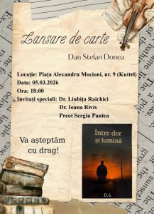 Lansarea cartii a avut loc, astazi, 5 martie 2026, la Parohia Ortodoxa Romana Iosefin, gazda evenimentului, in prezenta familiei, colegilor si prietenilor. Despre Dan Stefan Donea si despre cartea lui au vorbit dr. Liubita Raichici, care semneaza prefata cartii, dr. Ioana Rivis si preotul Sergiu Pantea, duhovnicul autorului, care in cateva cuvinte a descris drumul spiritual pe care Dan l-a parcurs in timp ce scria cartea.