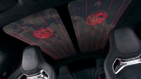 You get sporty AMG seats, a sporty flat-bottomed wheel, as well as a ‘Sky Control’ roof that features huge floating AMG emblems…
