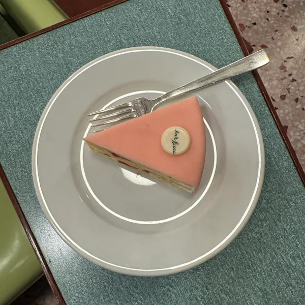 I really love… I always make it a point to grab a sweet treat at Bar Luce (the strawberry cake is my favorite and is as yummy as it is pretty) at Fondazaione Prada. It’s quite nice to take a breather at the uber-photographable, Wes Anderson-designed cafe. Pizza night in Milan is a tradition I started years ago with my other editor friends. It’s a night to unwind, decompress, and recap everything from the week. Le Specialità is a favorite among the fashion crowd, and I’m still thinking of the thin slices of spicy salami pizza.