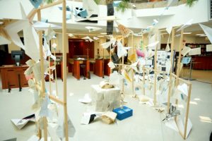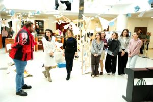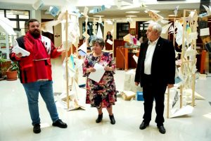 Un moment aparte al evenimentului a fost prezentarea instalatiei artistice „Zborul Cunoasterii”, realizata de studentii din anul I ai Facultatii de Arhitectura si Urbanism din Timisoara, specializarea Mobilier si Amenajari Interioare, sub coordonarea conf.dr.arh. Andreea Anghel si conf.dr.arh. Cristina Povian. Pornind de la un proces de brainstorming, studentii au imaginat o instalatie care combina pagini de carte si avioane din hartie realizate din foste planse ale studentilor-arhitecti – simboluri ale efortului, creativitatii si parcursului educational. In centrul compozitiei se afla omul si cartea deschisa, mesajul transmis fiind acela ca dezvoltarea personala si profesionala se construieste prin cunoastere.
