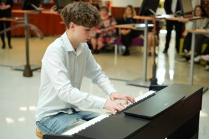 Atmosfera evenimentului a fost completata de un recital de pian sustinut de Stefan Tuhut, elev in clasa a X-a la Liceul de Muzica „Ion Vidu” din Timisoara si multiplu laureat al unor concursuri nationale, pregatit de profesoara Laura Sabau. De altfel, Biblioteca UPT are o colaborare de lunga durata cu Liceul de Muzica „Ion Vidu”, ai carui elevi si profesori contribuie frecvent la componenta artistica a evenimentelor organizate de biblioteca.