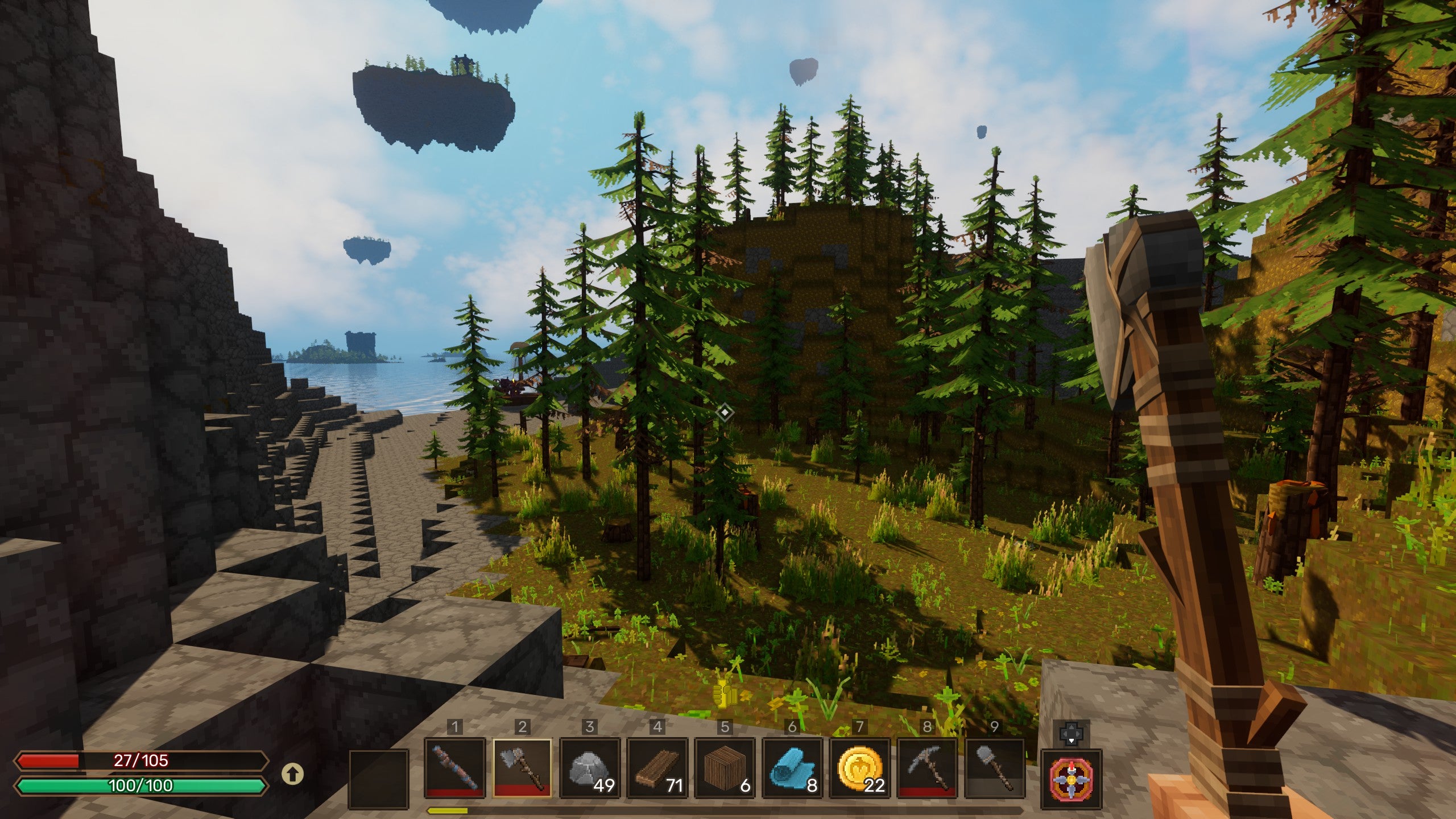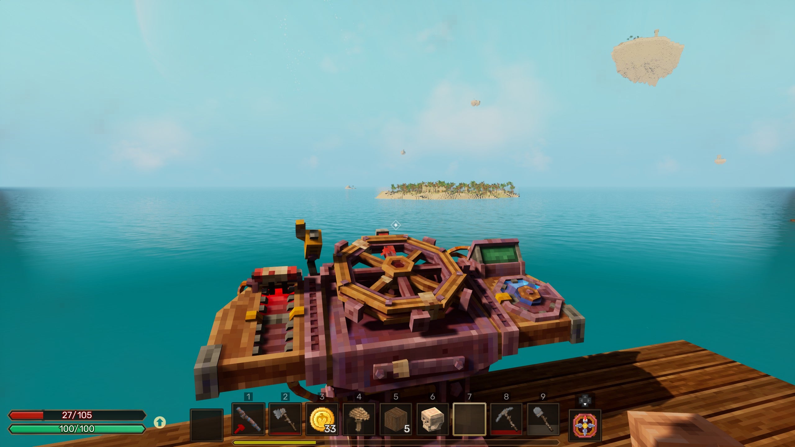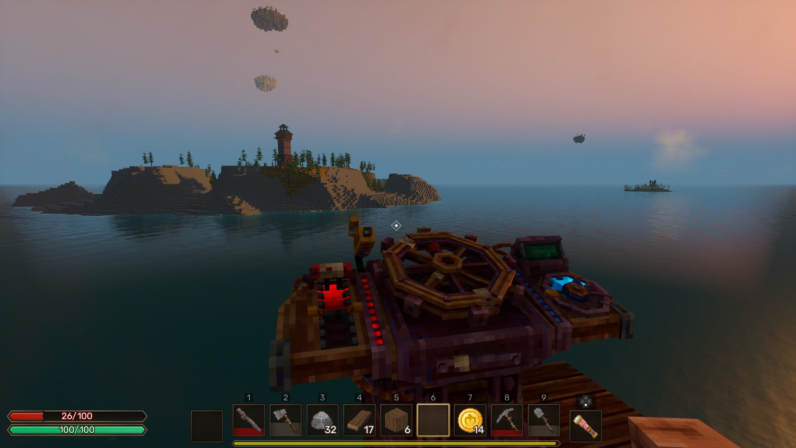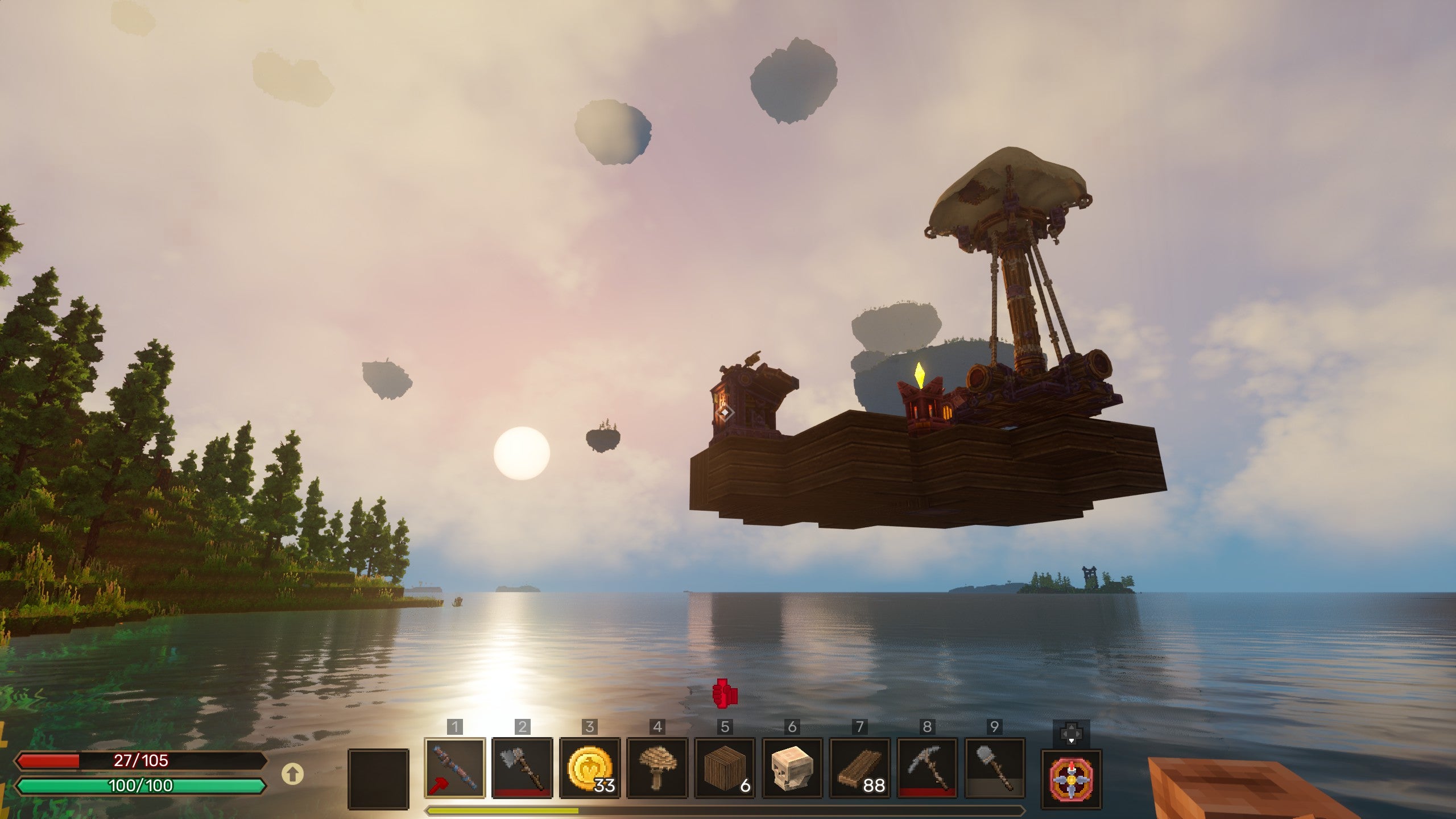 And yes, island. Everwind’s other big differentiator is its world; a vast ocean populated by diverse islands stretching away to the horizon: some big, some small, and – because of the whole airship thing – some floating way up in the sky. It’s a little bit Wind Waker, a little bit Sea of Thieves perhaps, and it feels pretty unique for a Minecraft-a-like.