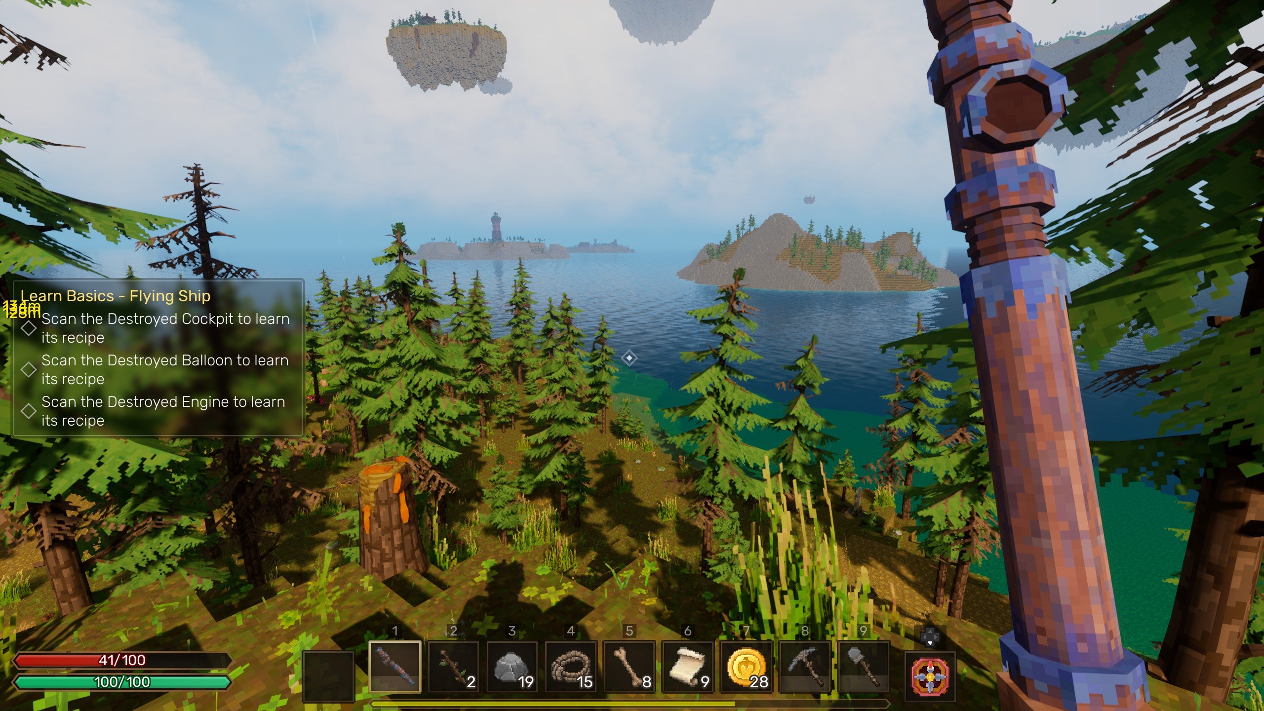 Not that my time with Everwind got off to a great start. After walking through the basics of crafting and fighting (just like Hytale, there’s an effort to do something more involved with combat, and you’re able to strafe, parry, block, and so on), we got to the exciting bit: pilfering a downed airship so I could build my own. That starts by scanning parts with your magic compass to get their blueprints – the minimum you need to fly being a cockpit, an energy generator, a wooden engine, and balloon – then it’s time to gather the materials to craft them.