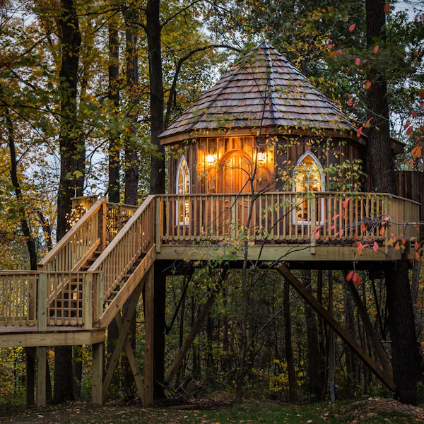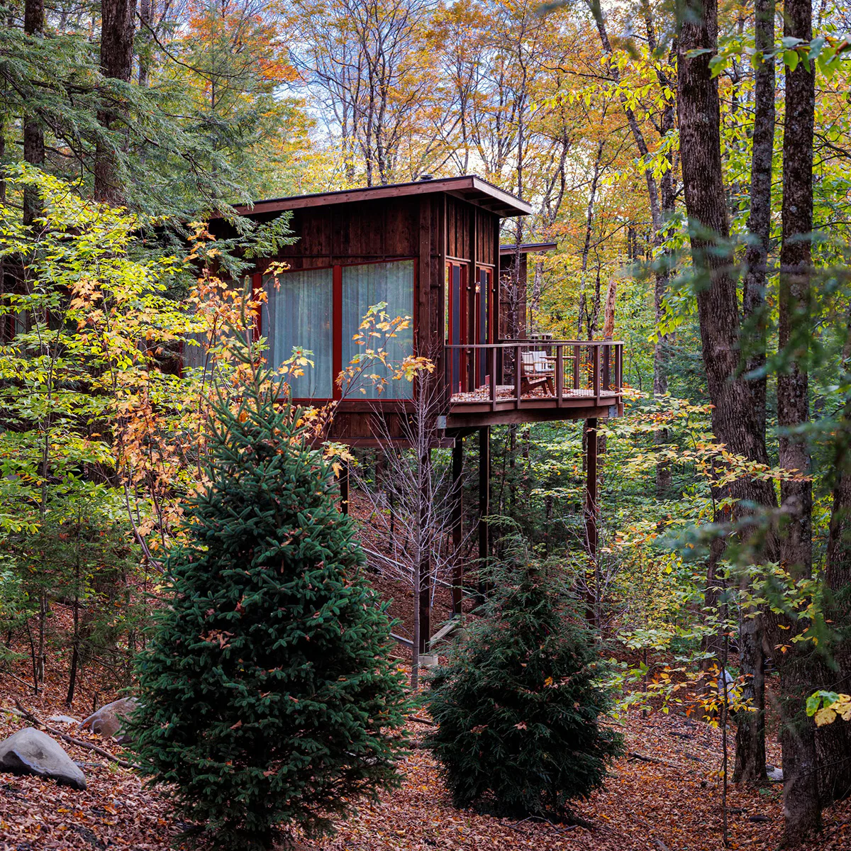 Photos Courtesy of Fort Treehouse Co./Ian Patterson, Mohican Media, Onera/Paul Clark, The Lodge at Primland/Noe DeWitt, Snow Bear Chalets, Treebones Resort/Kodiak Greenwood, TreeHouse Point/Claymore MacTarnaghan, Twin Farms/Claude-Simon Langlois