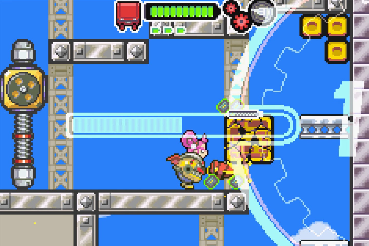 This is because the cartridge has built-in rumble, which means it’s one of two games for the GBA that offered this, the other being WarioWare Twisted! Rumble is used beautifully here to elevate the action, as you control a mech with a drill-bit attached that can chug through walls. Chugging through walls is always fun in a game, but Drill Dozer really delivers on every shudder and shake. It’s a magical device.