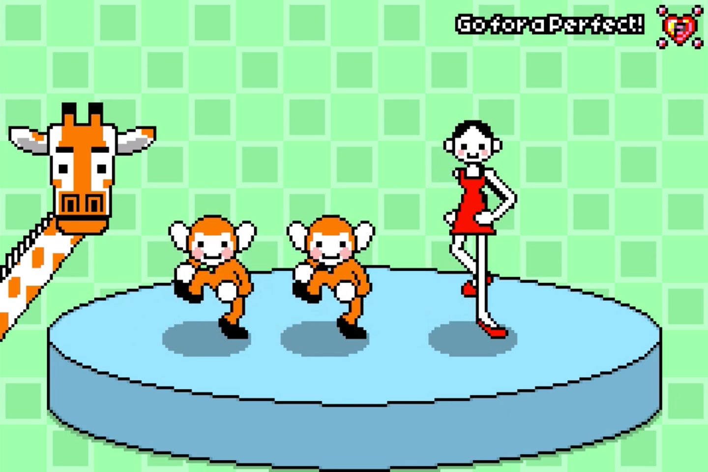 Rhythm Tengoku is similar in spirit to – if not exactly like – WarioWare (it was created by the same creative leads), whizzing players through a bizarre parade of musical mini-game scenarios, each with their own distinctive lo-fi art style. It’s not quite as frantic as WarioWare (at least not until you get to the later MegaMix stages), but it’s got the same relentless sense of absurd invention as it, here, builds challenges around call and response.