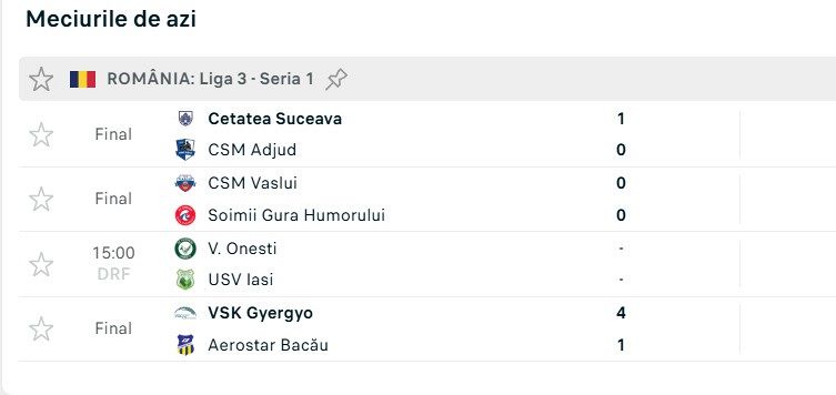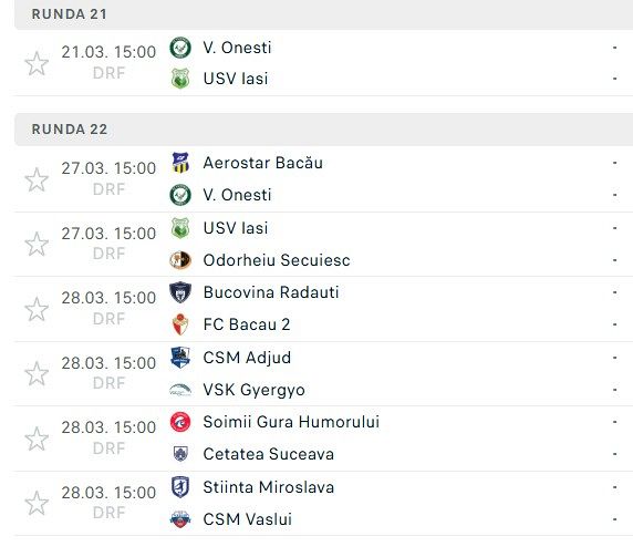 - CSM Vaslui – Șoimii Gura Humorului 0-0