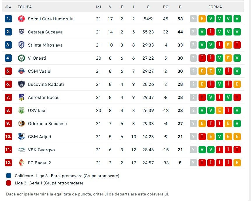 După 21 de etape disputate, CSM Adjud ocupă locul 10, cu 21 de puncte, fiind într-o zonă delicată a clasamentului.