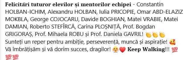 „Împreună putem construi mai mult decât un robot – putem construi viitorul”, transmit membrii echipei.