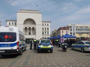 Inspectoratul de Politie Judetean Timis a organizat, miercuri, 25 martie, in piata centrala a Timisoarei, o ampla manifestare dedicata „Zilei Portilor Deschise”, cu prilejul aniversarii a 204 ani de traditie a Politiei Romane. Evenimentul, devenit deja o traditie locala, a adunat numerosi cetateni interesati sa descopere indeaproape activitatea politistilor si tehnica utilizata in misiunile zilnice.
