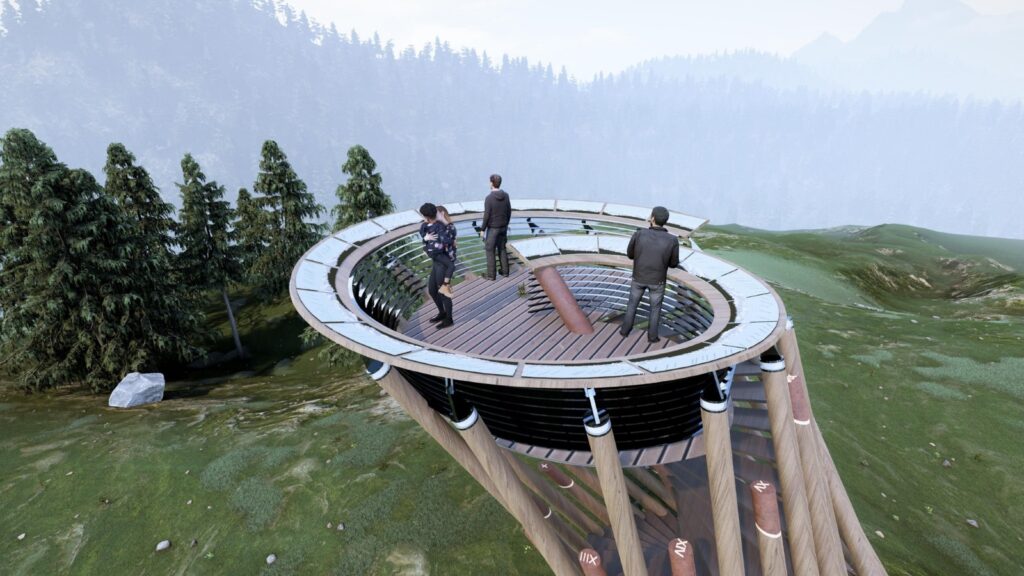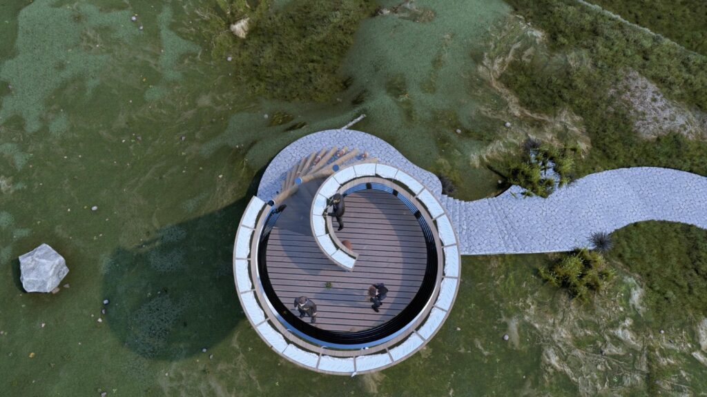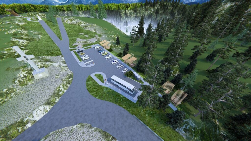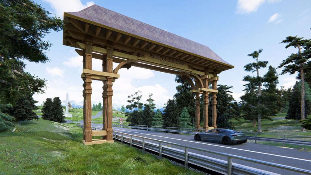 Va fi construită o poartă tradițională la limita dintre județele Suceava și Neamț, realizată din lemn masiv sculptat, cu motive specifice zonei – aproximativ 6 metri înălțime și o deschidere de 14 metri. Va fi amenajat un punct de belvedere modern (Turnul Talienilor), de 12 metri înălțime, cu structură elicoidală și 16 stîlpi dispuși circular (inspirați din cele 16 capitole din „Baltagul”), cu scară interioară și platformă panoramică, de unde turiștii vor putea admira peisajele și realiza fotografii și filmulețe spectaculoase. Totodată, va fi amenajată o parcare modernă, de aproximativ 800 de metri pătrați, realizată cu materiale ecologice, care va include alei pietonale, bănci, mese, toalete ecologice și iluminat ambiental cu lămpi solare.