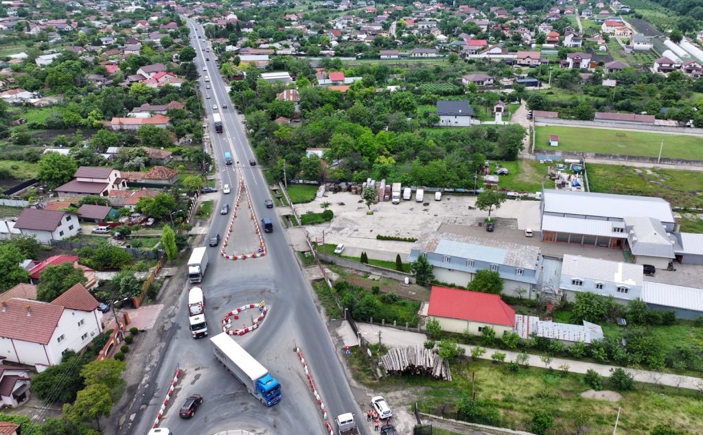 - • Lucrări de amenajare a intersecției cu sens giratoriu pe DN2–DN2B (lucrări de drum, structură rutieră, iluminat public al intersecției)