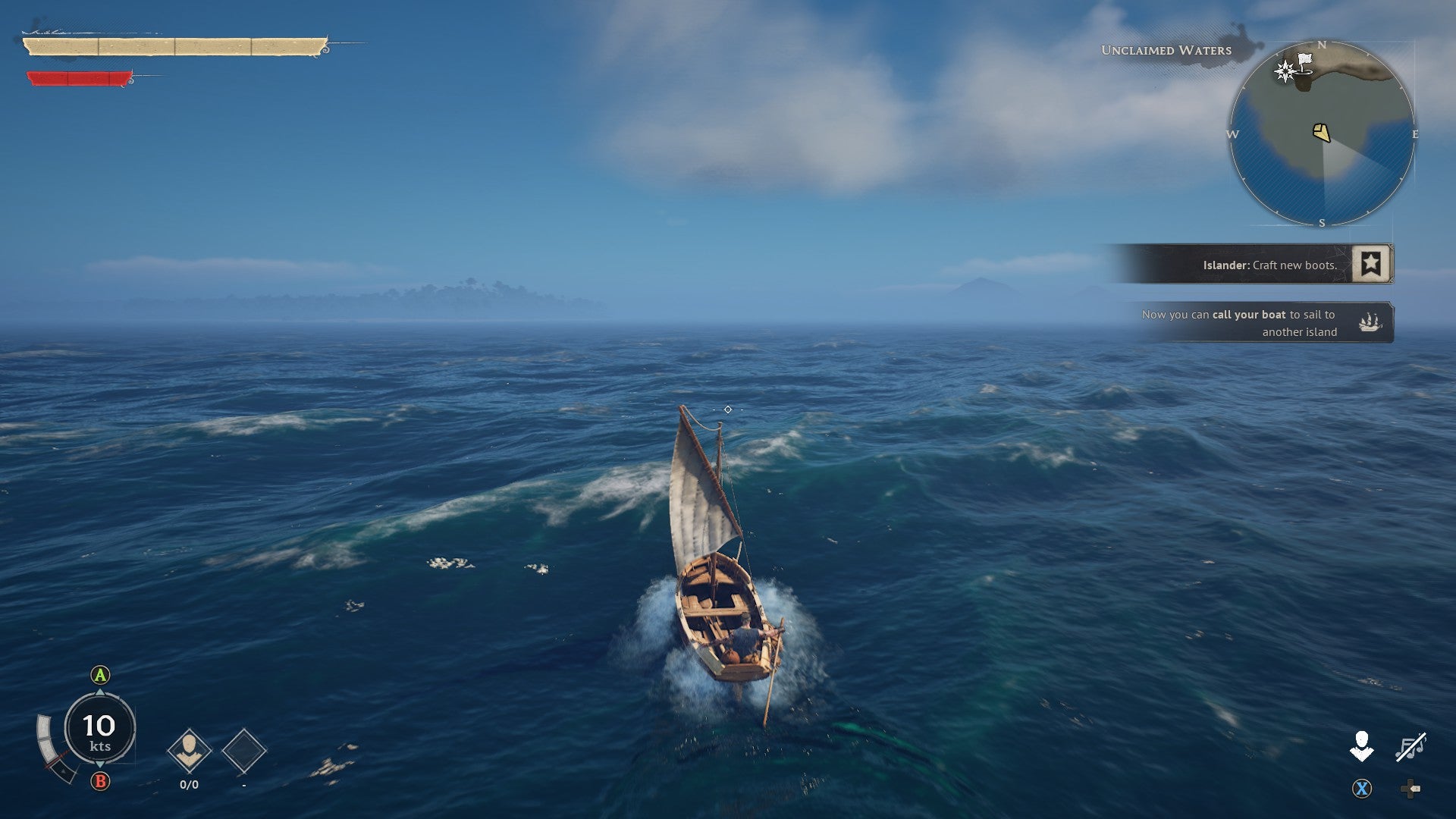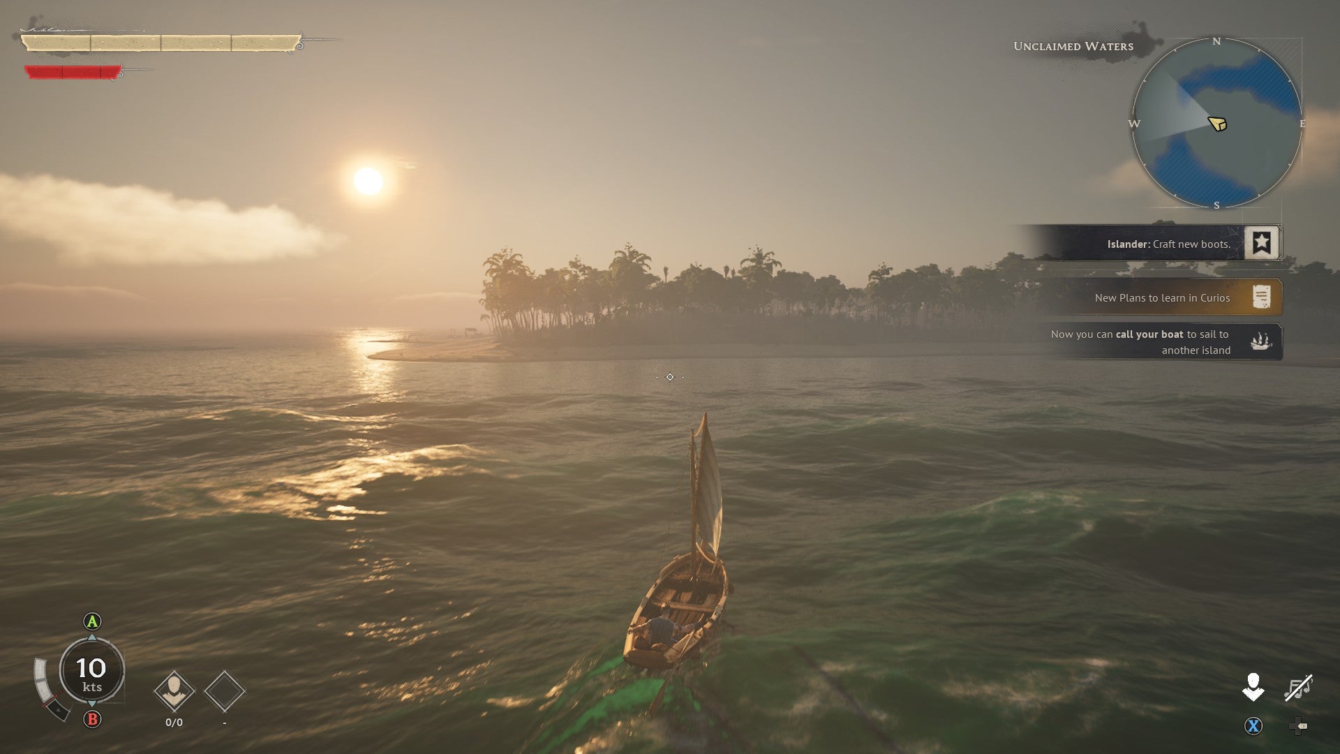 At this early juncture, sailing is torturously slow, so you’ll want to set up new camps and fast-travel points as soon as you reach new land – but it’s a promising start: the physics of it all feels good as you bob across the swelling waves, and the shifting water looks the part too. But eventually, toward the end of the demo, you’ll get your first proper ship. And it’s here, careening across the ocean with cannons ablaze – those early castaway adventures finally taking a properly swashbuckling piratical turn – I went from optimistic to completely sold.