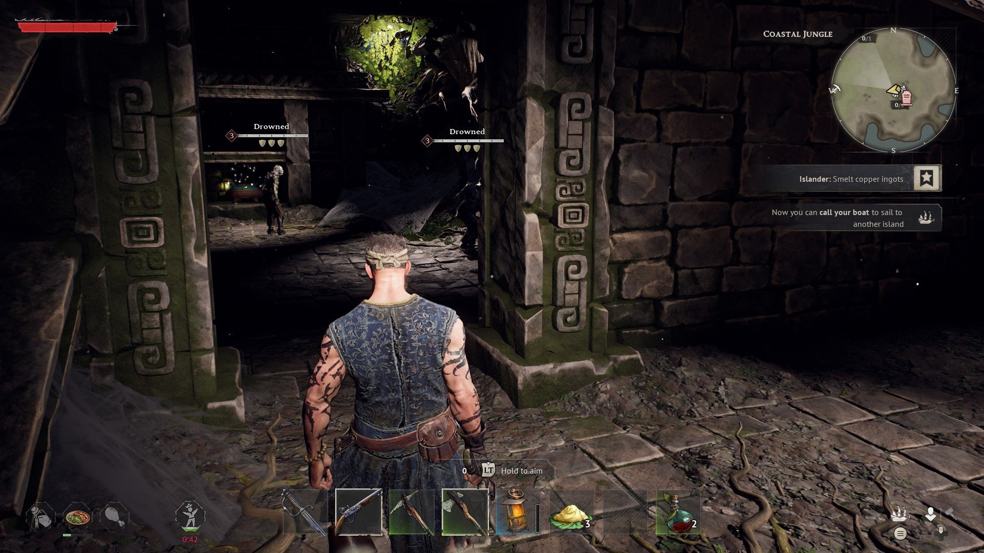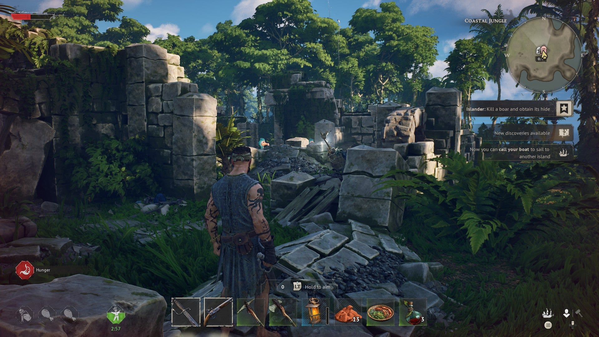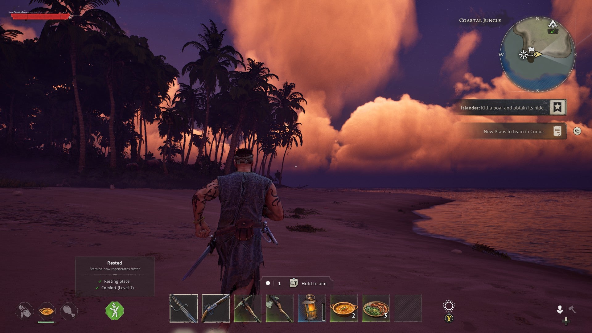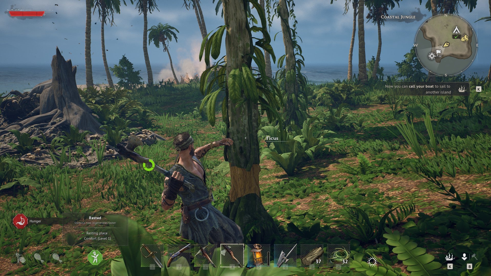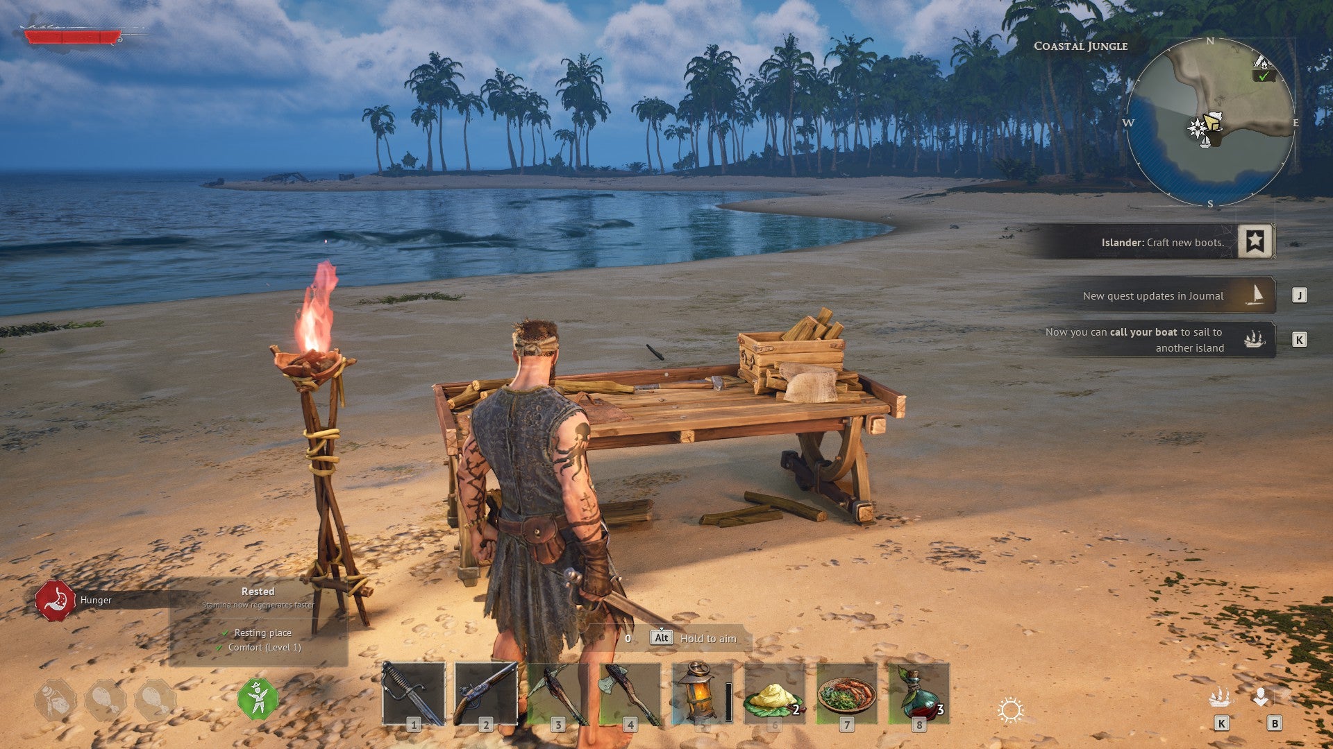 Ahead, dense jungle beckons with promises of adventure, danger, and mystery, but given you’ve little to your name at this point – beyond a broken sword, a shredded shirt, and (hopefully) a thirst for survival – you probably don’t want to dash off too far. Not least because in this perilous world of charging boars, giant razor-clawed crabs, and bloated undead sailors, even a mildly irked knee-high dodo is liable to one-shot you if you’re not careful.