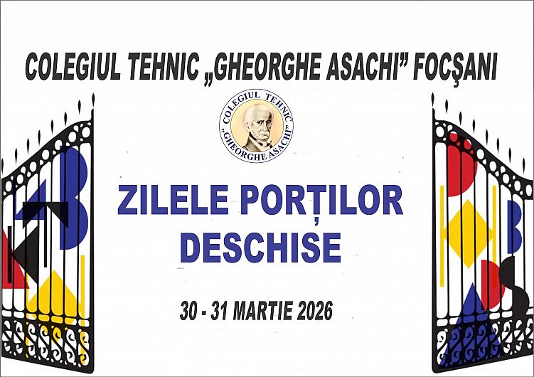 Elevii din județul Vrancea care se pregătesc să facă pasul către liceu au ocazia, la finalul lunii martie, să descopere oferta educațională a uneia dintre instituțiile de învățământ tehnic de tradiție din Focșani. Colegiul Tehnic „Gheorghe Asachi” organizează, în perioada 30 – 31 martie 2026, evenimentul „Zilele Porților Deschise”, adresat atât elevilor de gimnaziu, cât și părinților acestora.