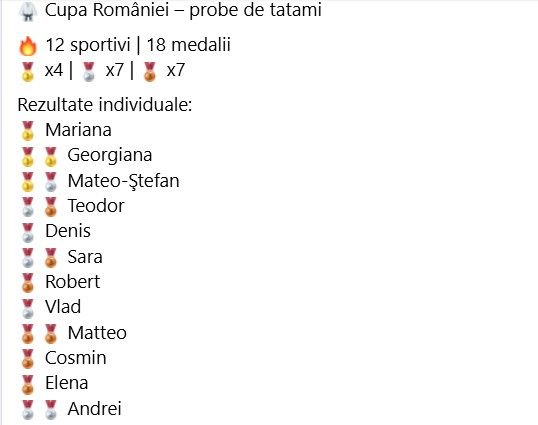 Potrivit unei informări publicate duminică, 5 aprilie 2026, pe pagina oficială de Facebook a clubului, delegația vrânceană a fost formată din 12 sportivi, care au demonstrat determinare, disciplină și un nivel ridicat de pregătire.