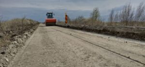 🟦 Pe sectorul DN 59B Livezile – Deta (km 60 – km 75), săptămâna aceasta s-a mers mai departe cu operațiunile de frezare și excavații, urmate de așezarea materialului geotextil cu rol anticontaminator, așternerea straturilor de fundație din balast.