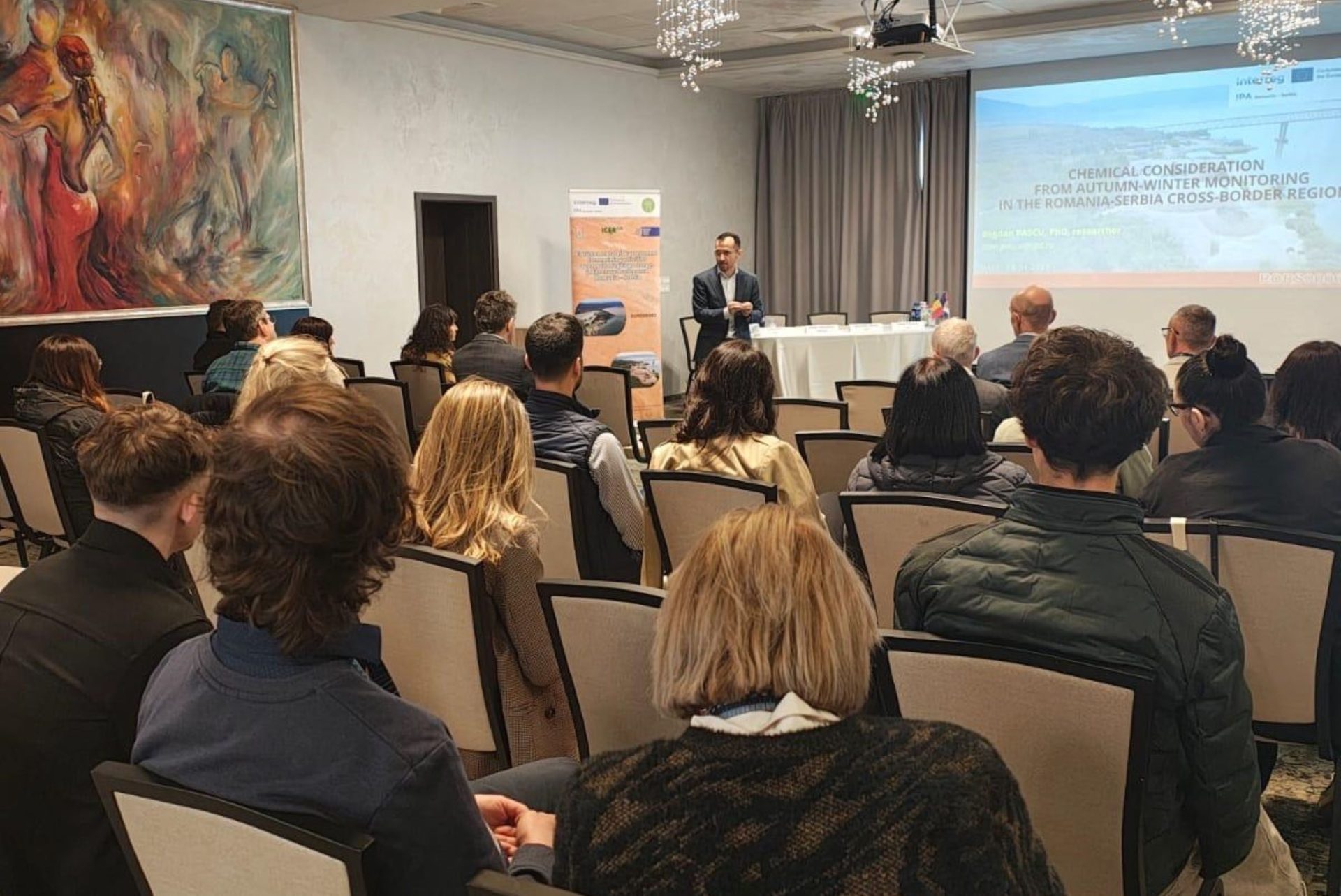 „Considerații chimice din monitorizarea toamnă-iarnă în regiunea transfrontalieră România-Serbia”, lucrare prezentată de către dl dr. Bogdan Pascu, cercetător în cadrul proiectului ERA-MIN. Analiza concentrațiilor de ioni metalici în apă și sol realizată în perioada toamnă-iarnă reflectă starea de sănătate a ecosistemului transfrontalier, furnizând indicatori critici pentru evaluarea riscului de mediu și a potențialului impact negativ asupra sănătății populației din regiunea România-Serbia.