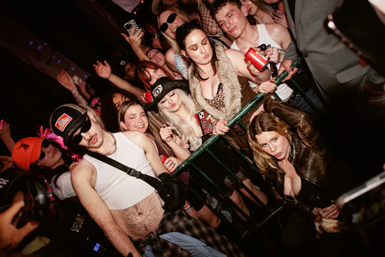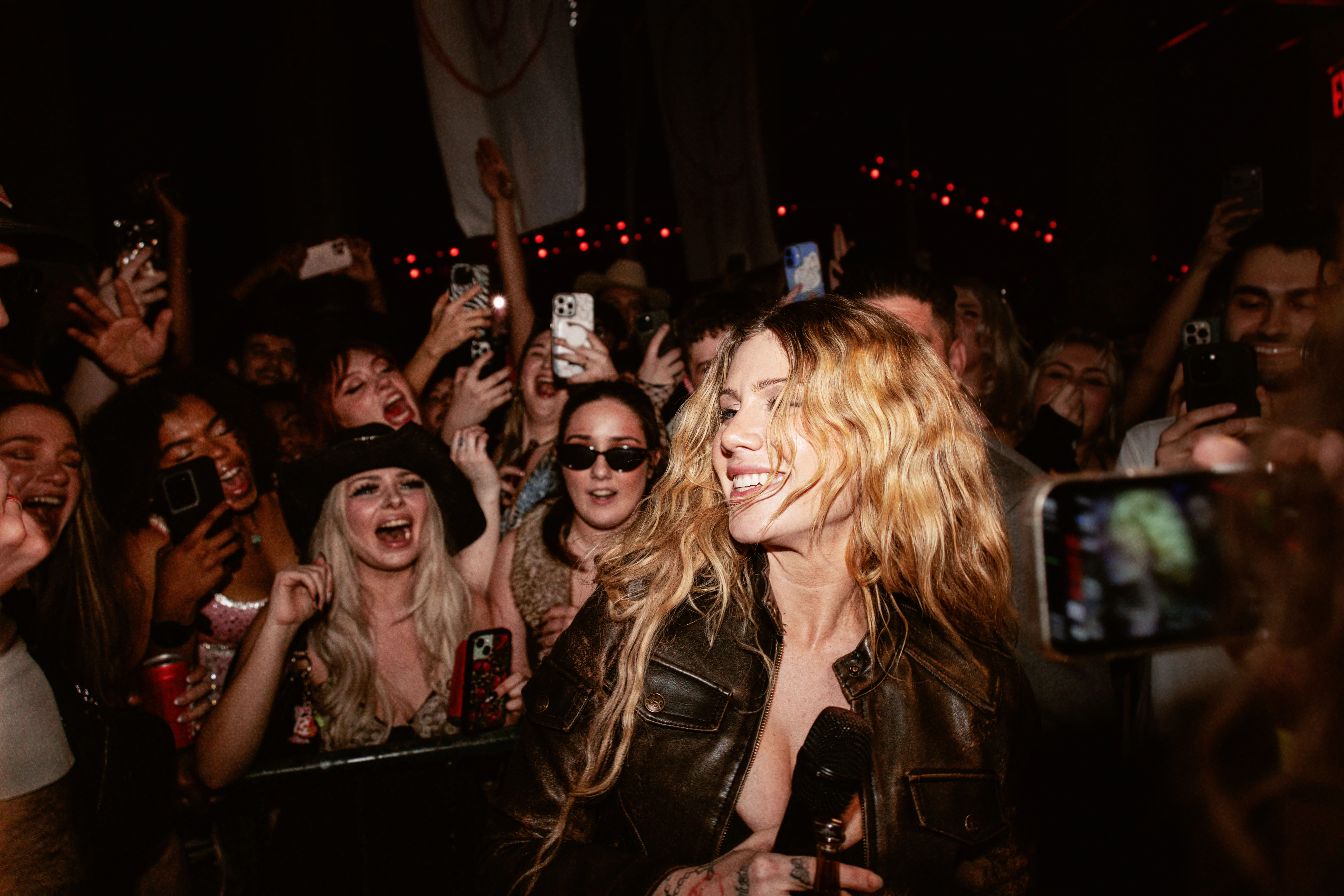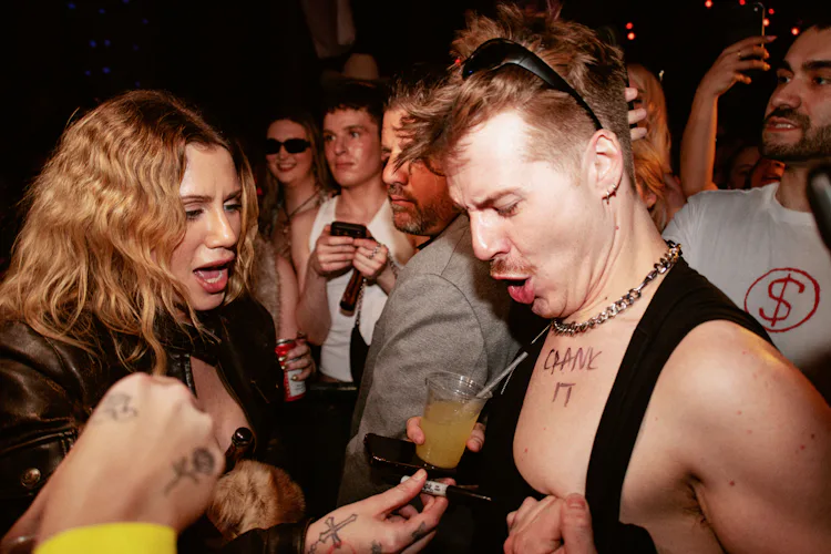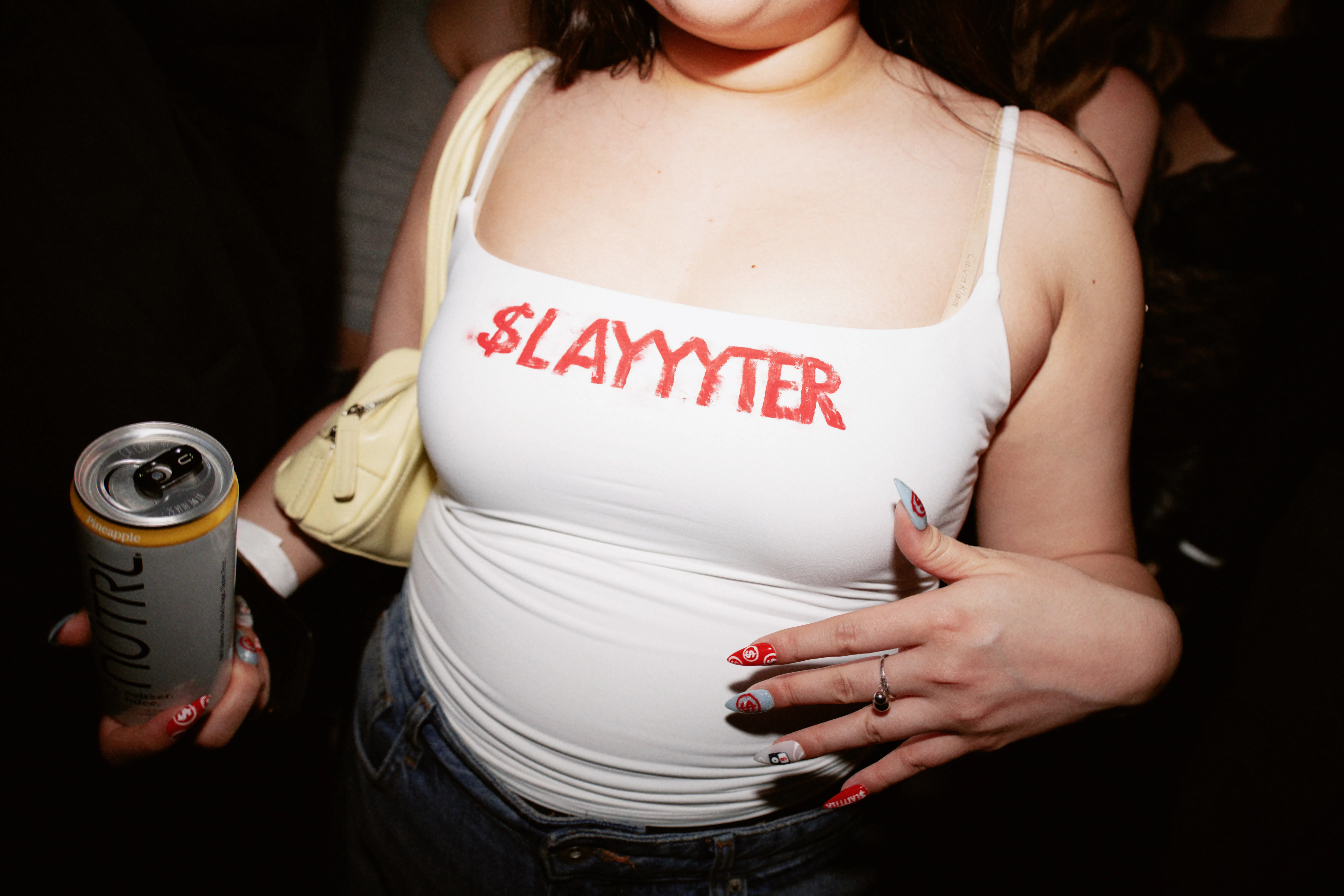 After composing herself, Slayyyter and her posse approach the crowd and thank everyone for being there. With one final “crank it!,” she descends into the audience. It’s instant mayhem; security attempts to escort her to the bar, as she stops for countless selfies. Circling back to VIP, she poses with her legion of drag-queen stans for even more selfies and watches with glee as someone dressed in a bunny costume menaces onstage. Finally, she asks the DJs to throw on “Crank” for one last dance. She gives the now-signature Slayyyter swerve by shoving her shoulders forward aggressively one at a time, then throws her hands up, her head back, and releases a “crank it!” so guttural and joyous, you just know teenage Slayyyter, iPod in hand, would be proud.