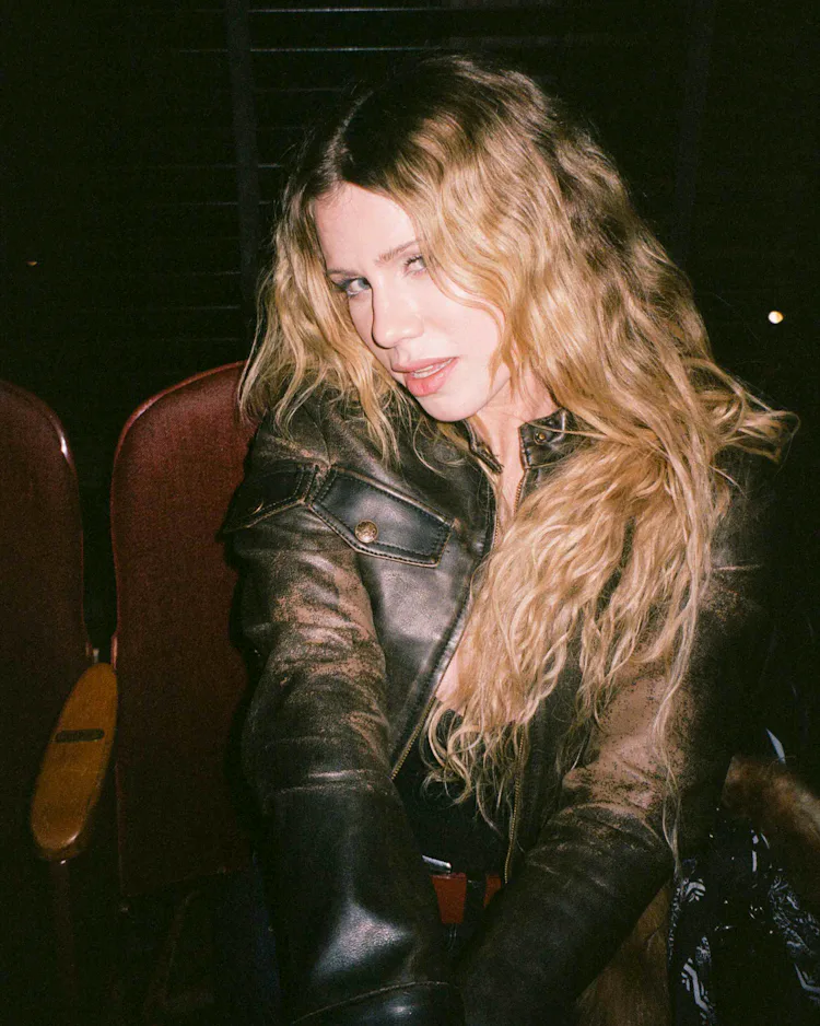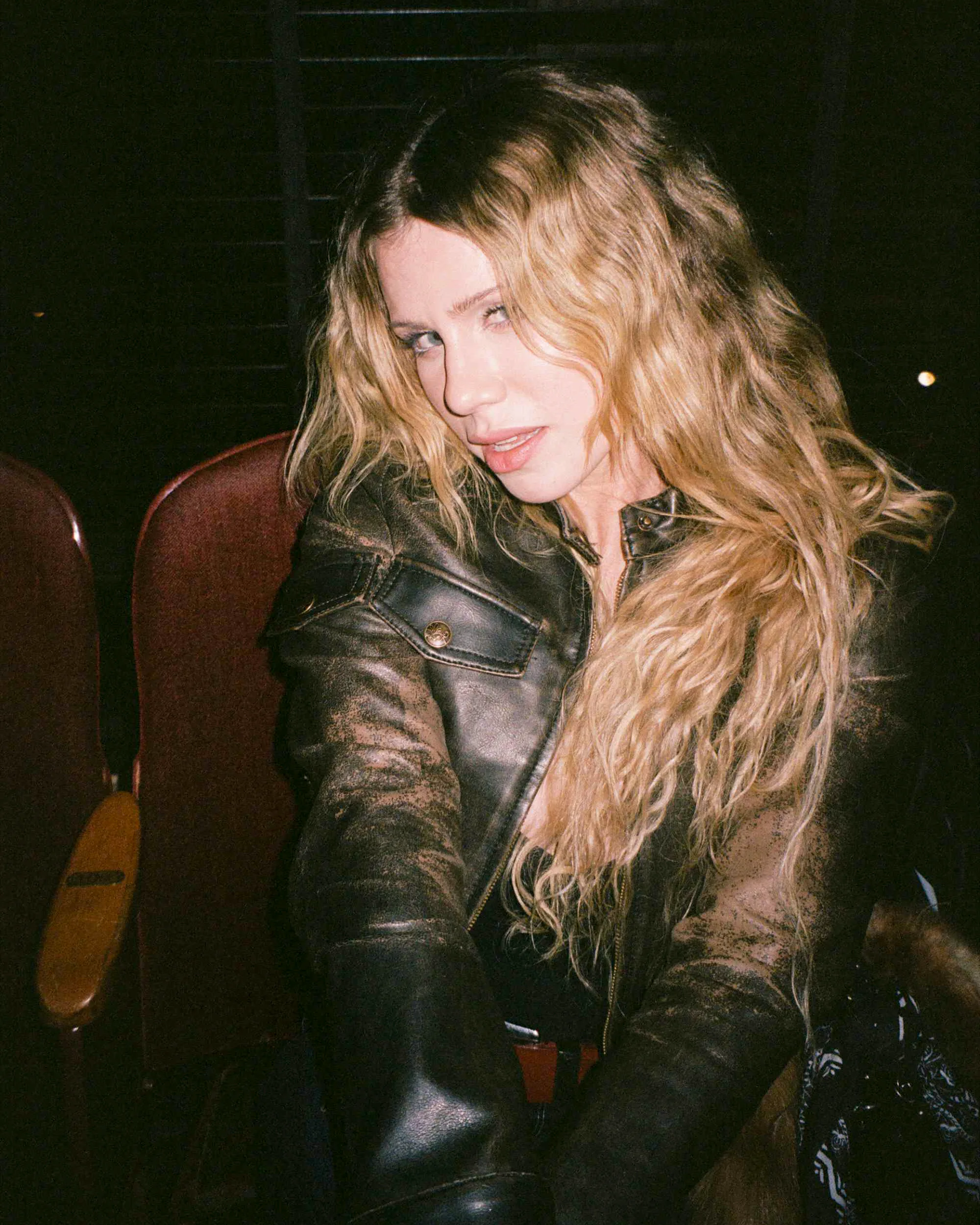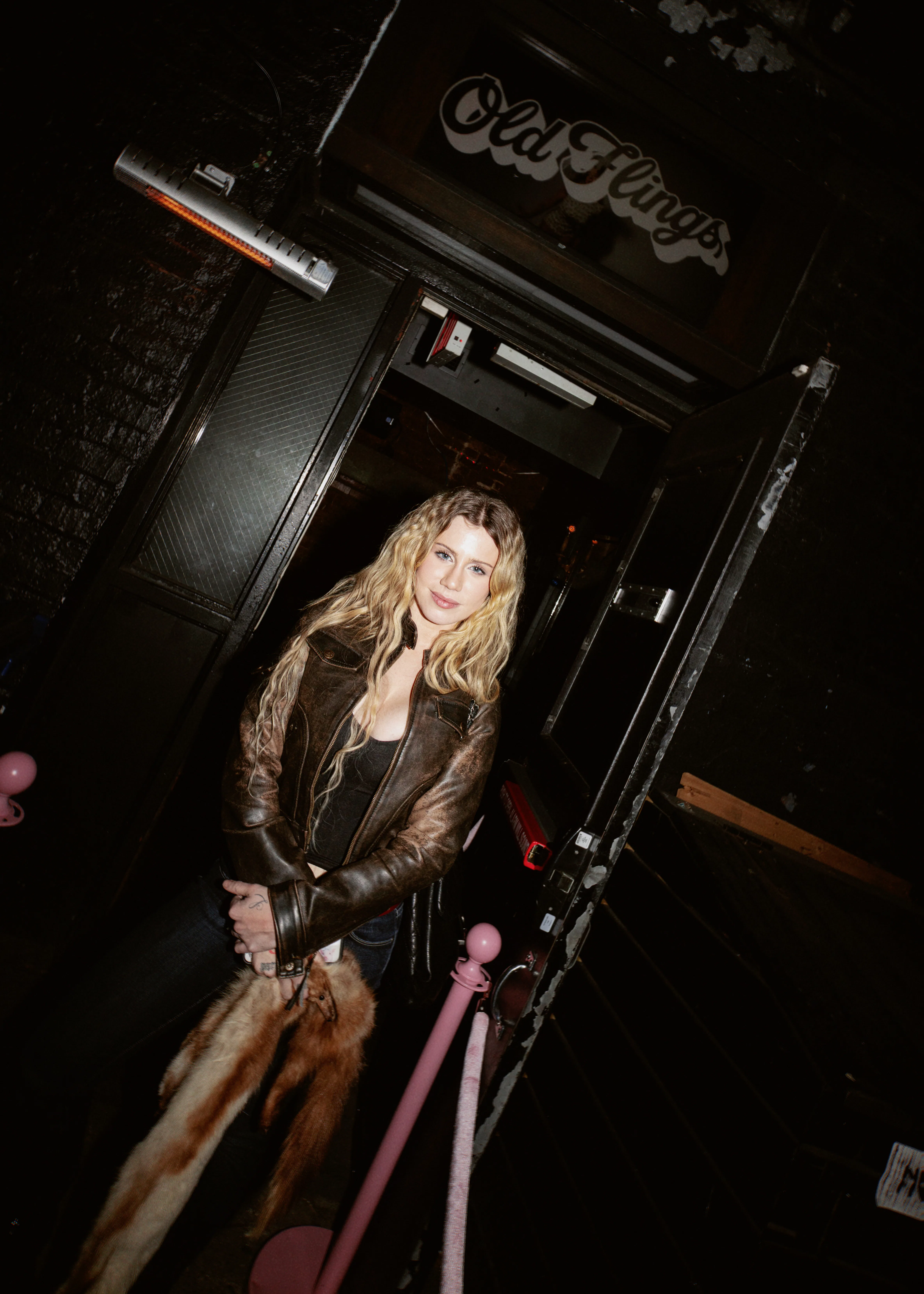 A note about her fashion: When we meet at Old Flings, she’s wearing a tight-fitting leather jacket, indigo skinny jeans with one leg tucked into her fringed suede boots (“It’s the boot French tuck”), a double-headed fox stole she bought on Poshmark (“I’m a Poshmark addict”), and an old Chanel bag (“a beat-up Chanel, if you will,” she says with a wink). She’s a clear fashion lover, but for this album cycle, she skipped the stylist. “There’s so many amazing stylists I’ve worked with, and there are stylists who bring an artistic quality to a project that is crucial, but it’s not always called for every aesthetic. This music did not warrant anything that’s hard to get your hands on. I wanted everything to feel like it was pulled off my bedroom floor.”