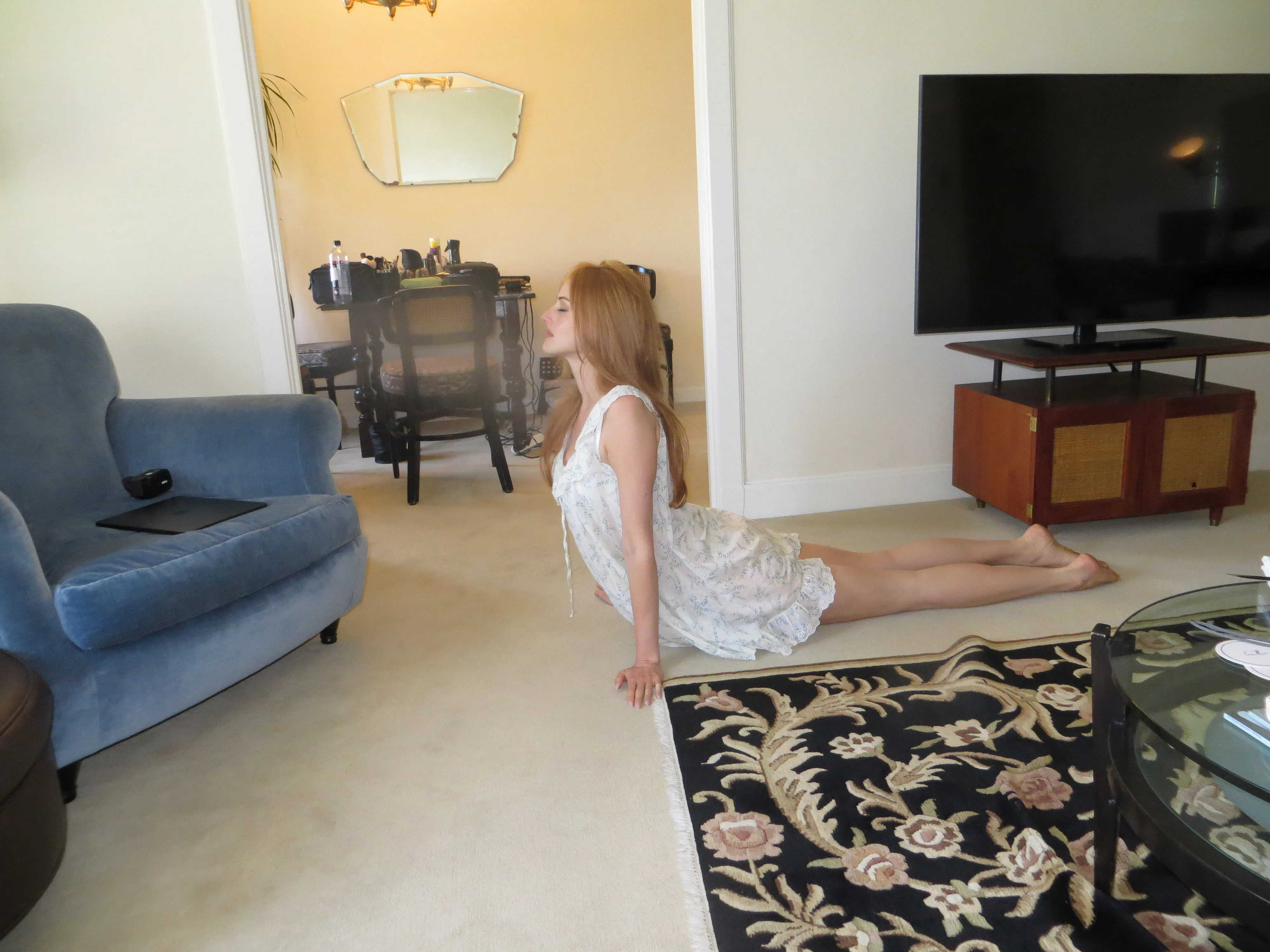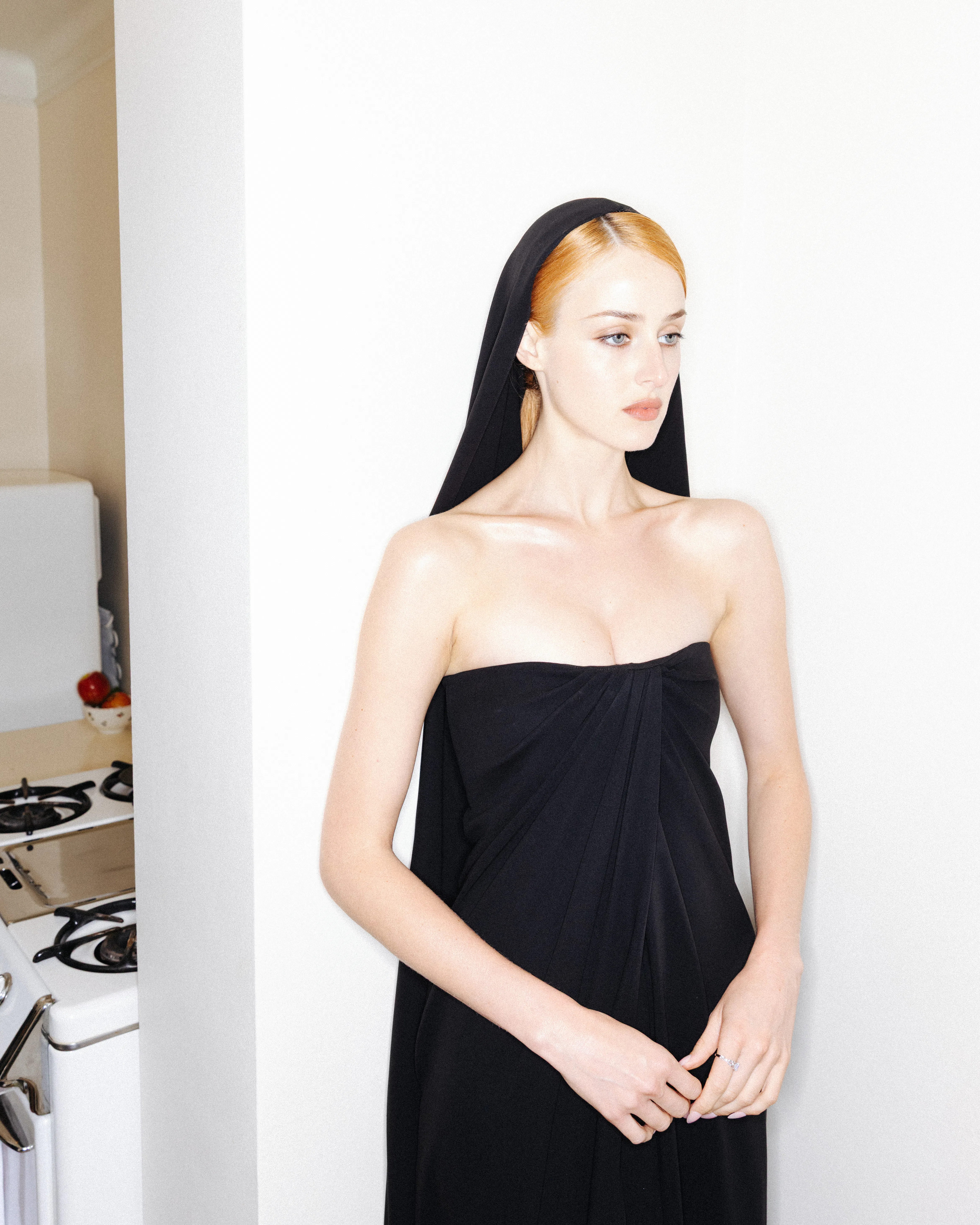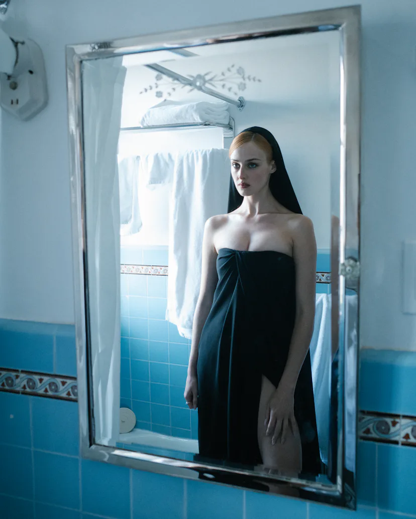 Van Patten spent her premiere day posted up at the Chateau Marmont, where she got ready for the evening by shaking off the pressure with some light reading (Marcus Aurelius’ Meditations), a quick yoga session, and a playlist loaded with Italian opera. If the playlist feels jarring for someone who is only 27 years old, her Balenciaga outfit might help it to make sense. She was an angel of the night in a hooded strapless dress; her porcelain skin and ginger hair were demure, even holy, but the slit in her dress kept the va-va-voom. It was classic Italian glamour à la Monica Vitti, reimagined for Hollywood. See how she made it from sunrise to sunset (and into bed with a burger) below.