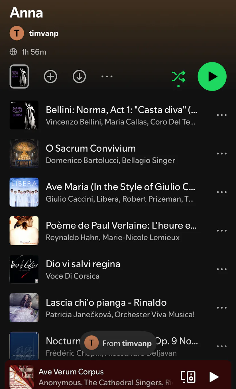 “The playlist for the evening.”
