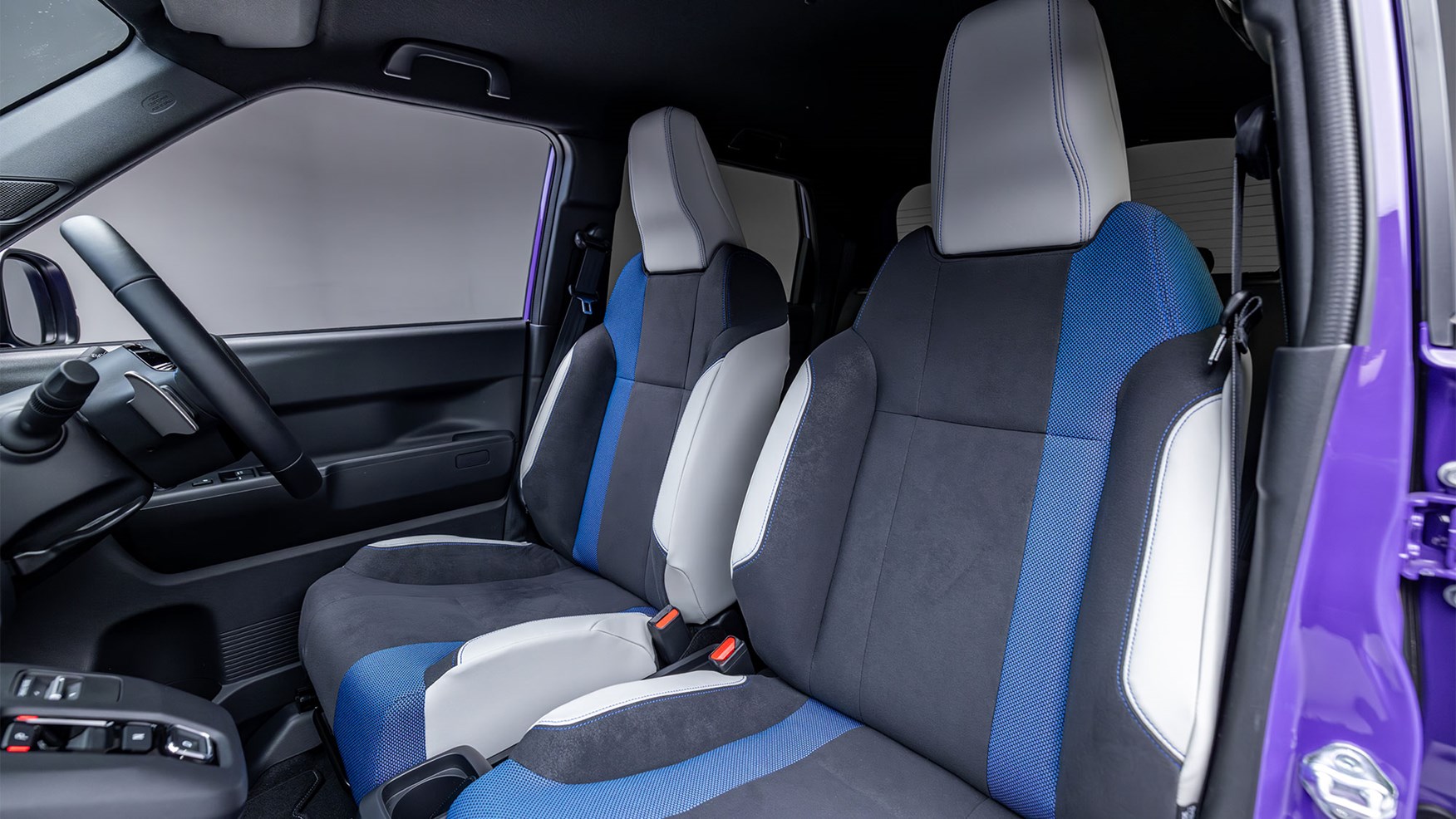 The Honda Super-N gains sportier seats trimmed with asymmetrical blue upholstery that again nods back to the Honda City Turbo II.