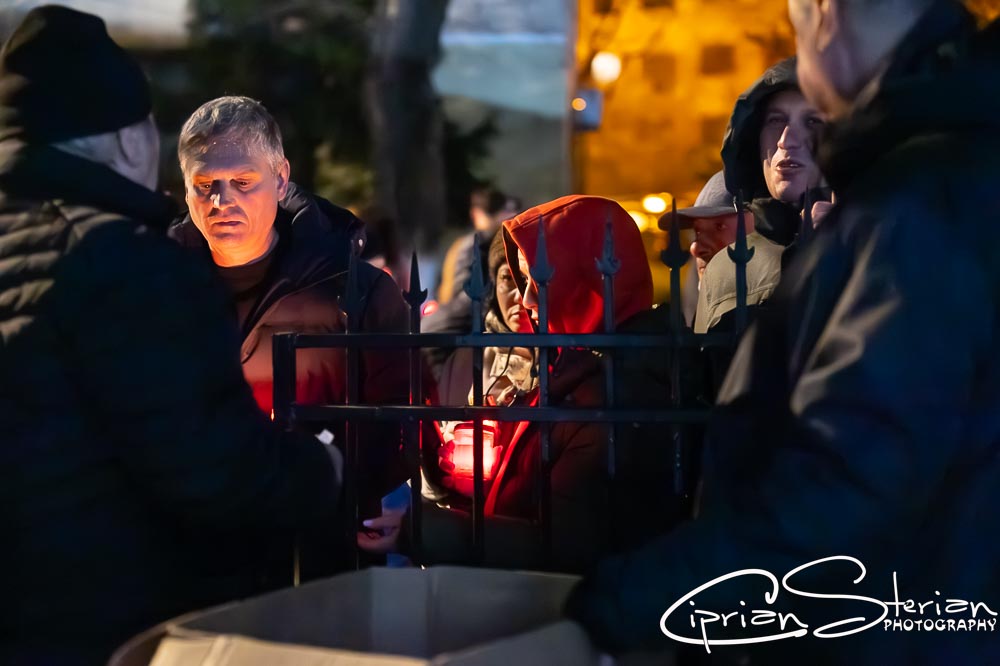 După mesajul Arhiepiscopului cei mai mulți credincioși au mers să ia pască din cele trei locuri amenajate după care s-au îndreptat către case. O parte mai mica dintre aceștia au intrat în Catedrala Arhiepiscopală pentru a participa la continuarea slujbei oficiate de IPS Ciprian.