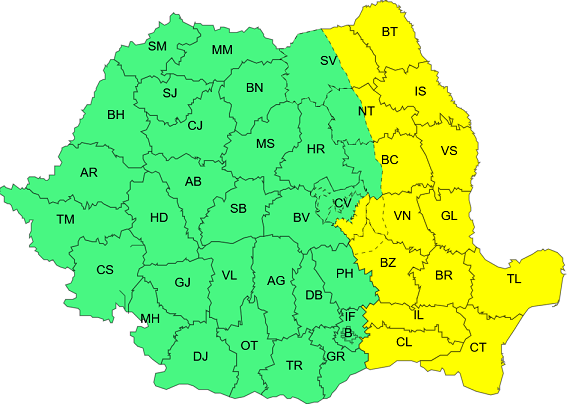 “Pe parcursul zilei de sâmbătă, în cea mai mare parte a Moldovei, în Dobrogea și estul Munteniei, vor fi intensificări ale vântului cu viteze de 50…65 km/h. În zona Carpaților de Curbură rafalele vor fi de 70…80 km/h.”