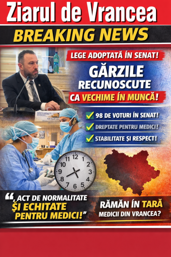 Senatul României a adoptat, în ședința de ieri, o inițiativă legislativă care vizează corectarea unei lacune importante din legislația muncii și din sistemul sanitar, cu impact direct și asupra personalului medical din județul Vrancea.