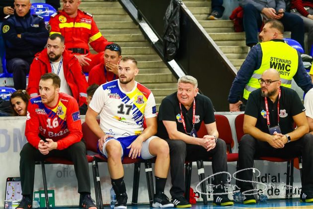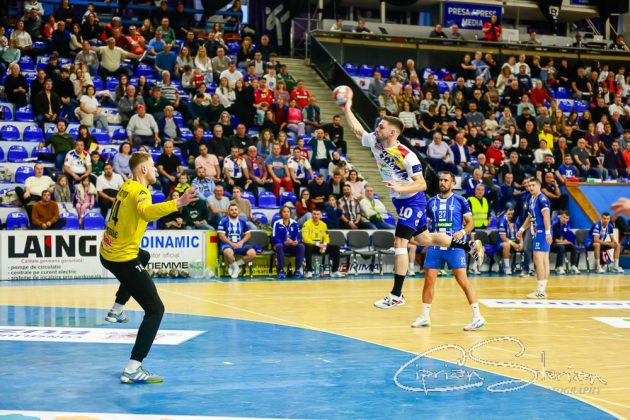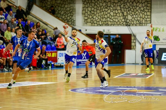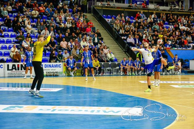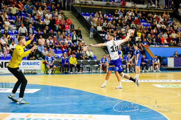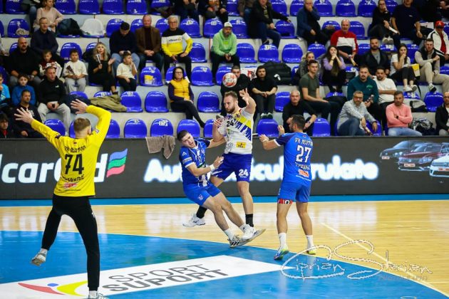 # Și e 11-3 în min. 14, după un 7m al lui Ionuț Broască și 12-4 după ce și căpitanul Andrei Bejinariu își trece numele pe lista marcatorilor.